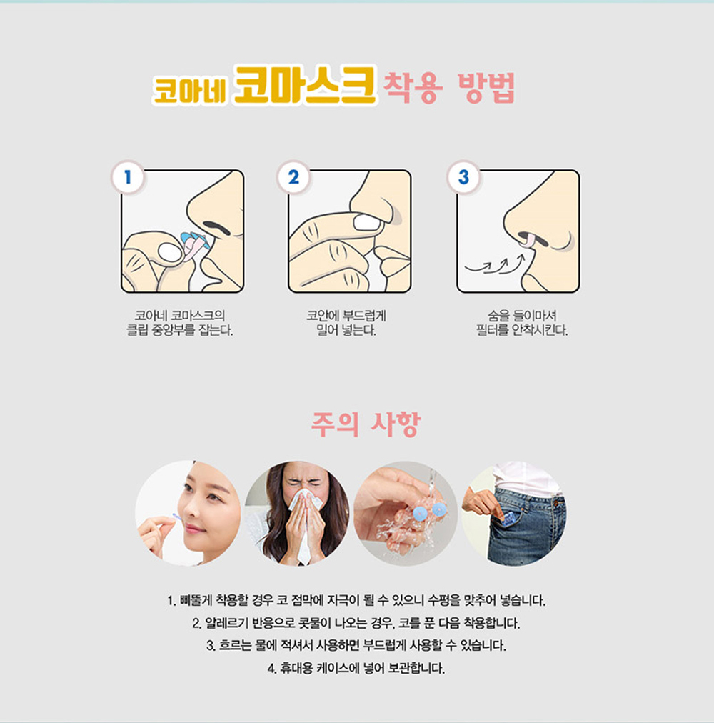 ※삐뚤게 착용 할 경우 코 점막에 자극이 될 수 있으니 수평을 맞춰 넣어주세요※