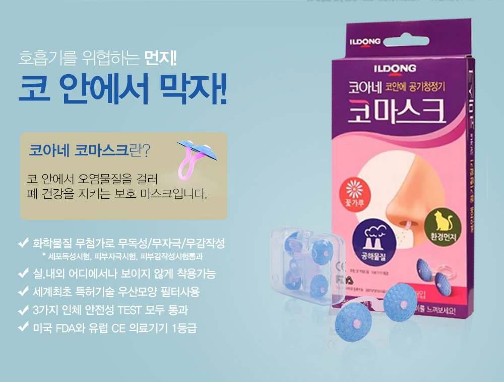 코아네 코마스크는 자극을 최대한 줄여 천식, 알레르기, 비염환자 까지 생각해 만든 일동생활건강 의 마음입니다.