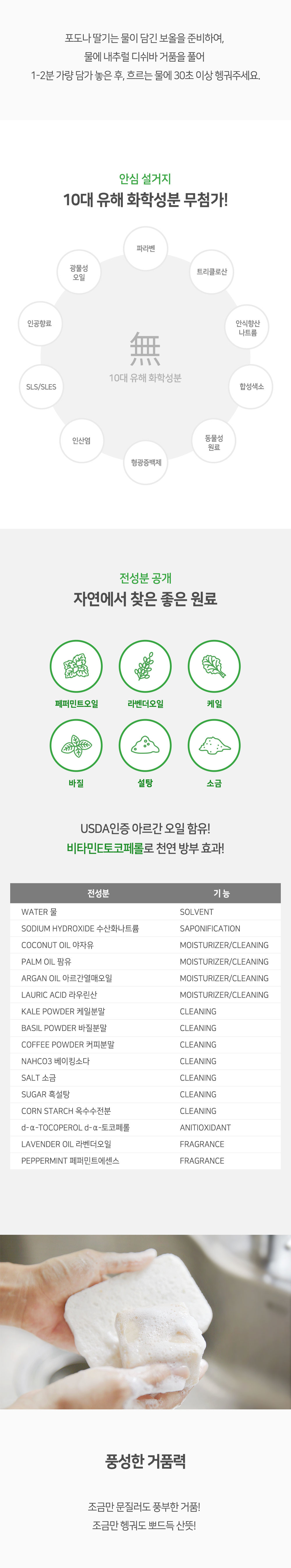 과일과 야채, 식기까지 씻을 수 있는 안전한 고체 타입 주방 세척제!