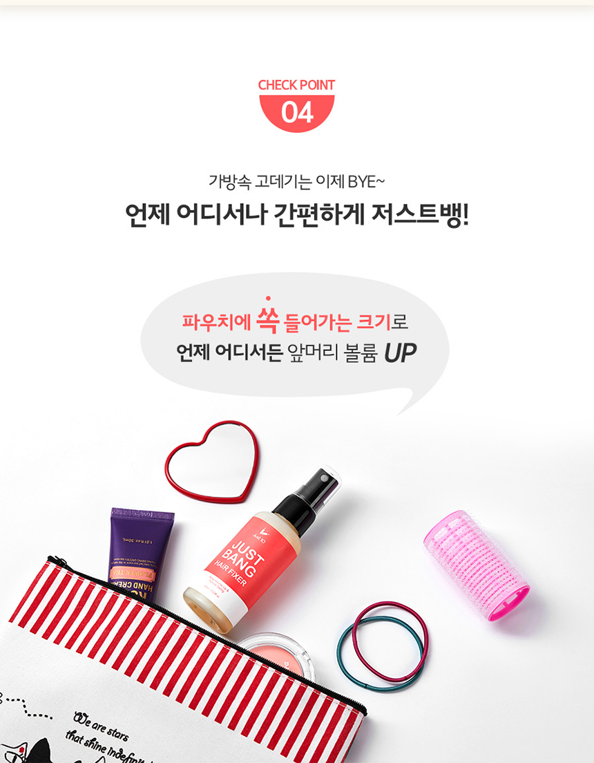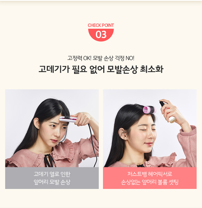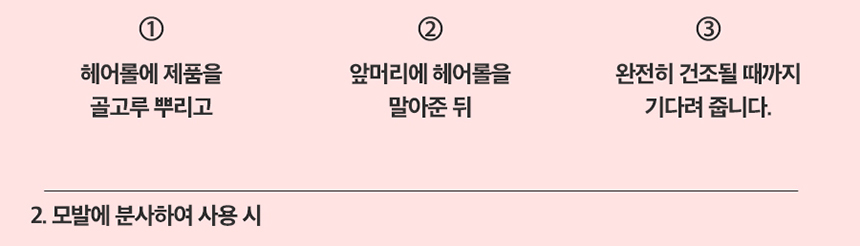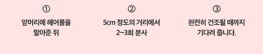 - 헤어롤에 제품 분사 후 10분 정도 말려주면 앞머리 볼륨이 하루종일 유지된다는 점