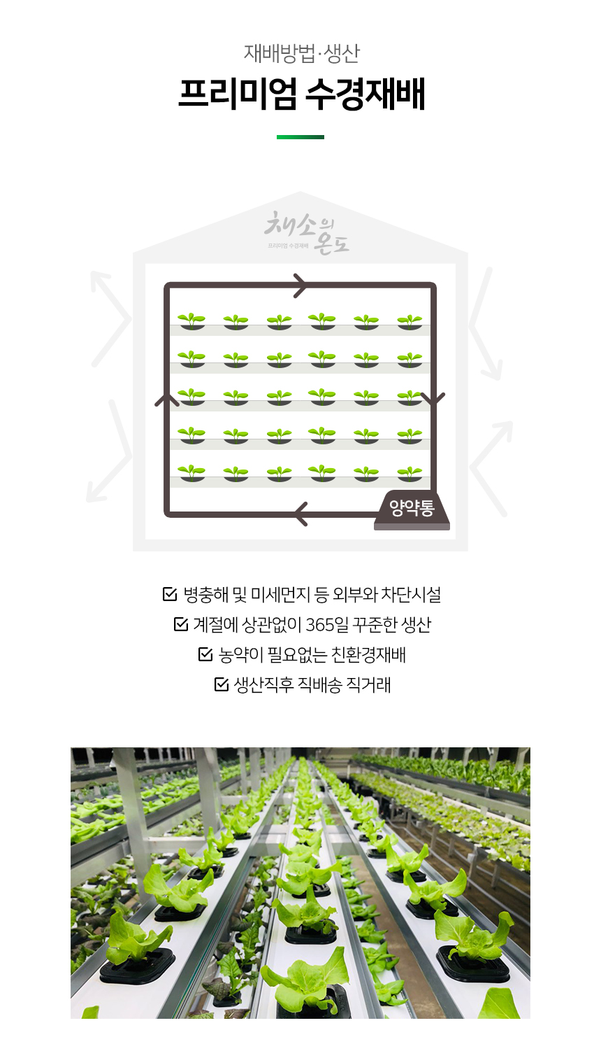 - 365일 신선한 채소를 가격 변동없이 안정적으로 공급받을 수 있다는 점