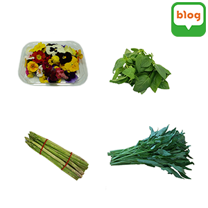 그린팜 채소 (식용꽃 2팩, 바질 100g, 공심채 500g, 아스파라거스 500g 중 랜덤배송)
