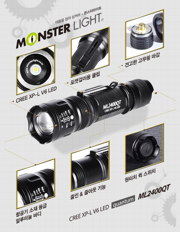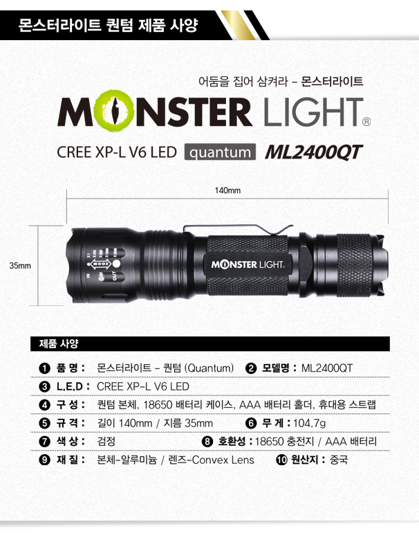 104.7g (배터리 미포함) 초경량 초강도 렌턴_몬스터라이트 퀀텀