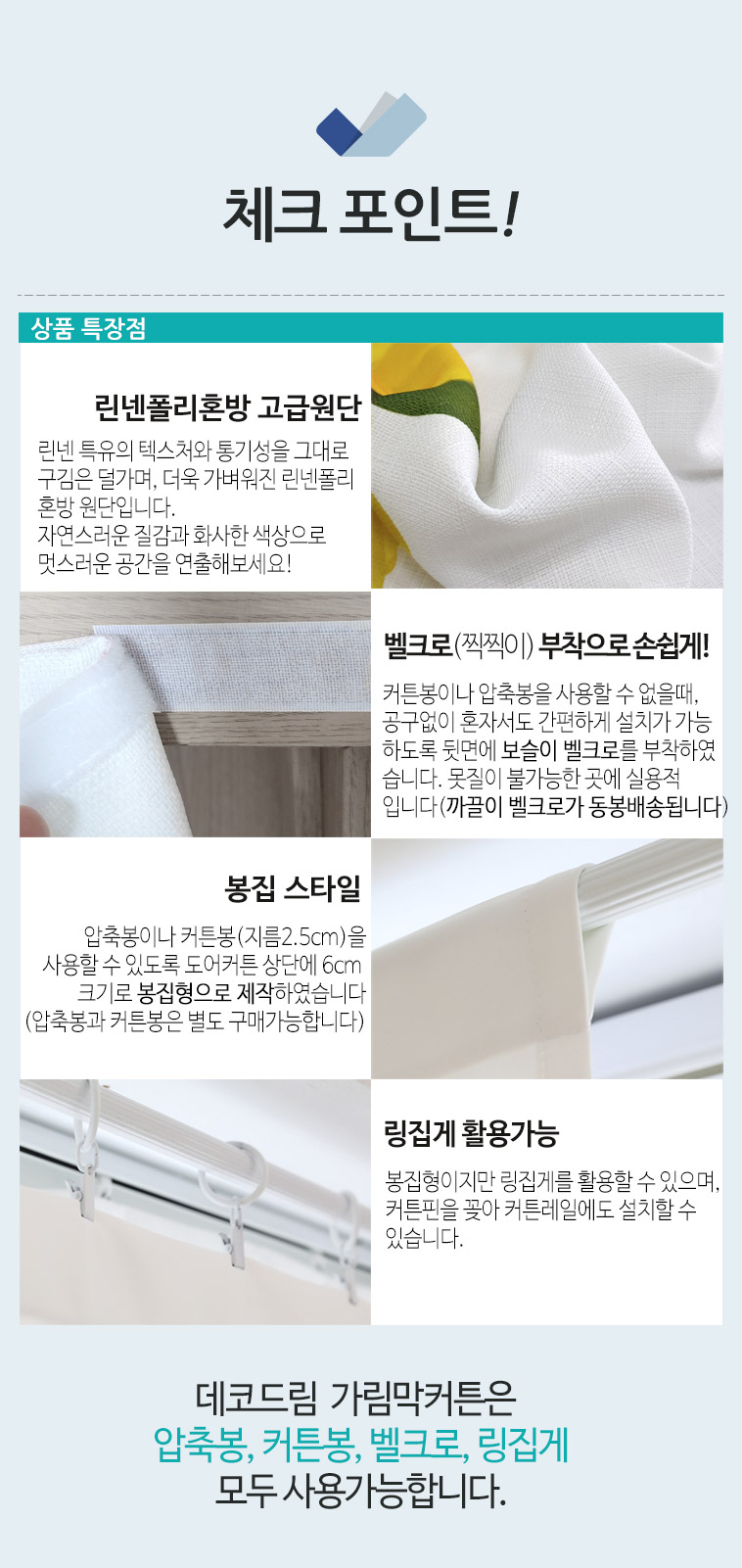 데코드림 벨크로 린넨 가림막 커튼 (디자인 선택)