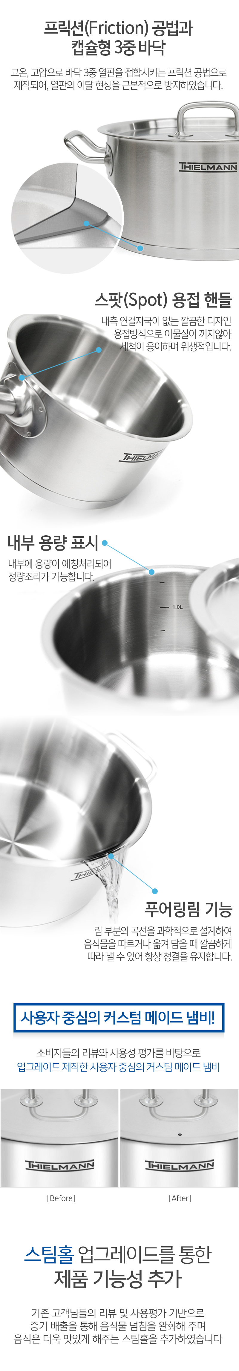 1) 독일 인덕션 전기레인지 전문 기업 틸만이 직접 개발하여 판매하는 인덕션용 냄비라 안심하고 사용할 수 있습니다. (하이라이트나 가스레인지에서도 사용 가능합니다.)