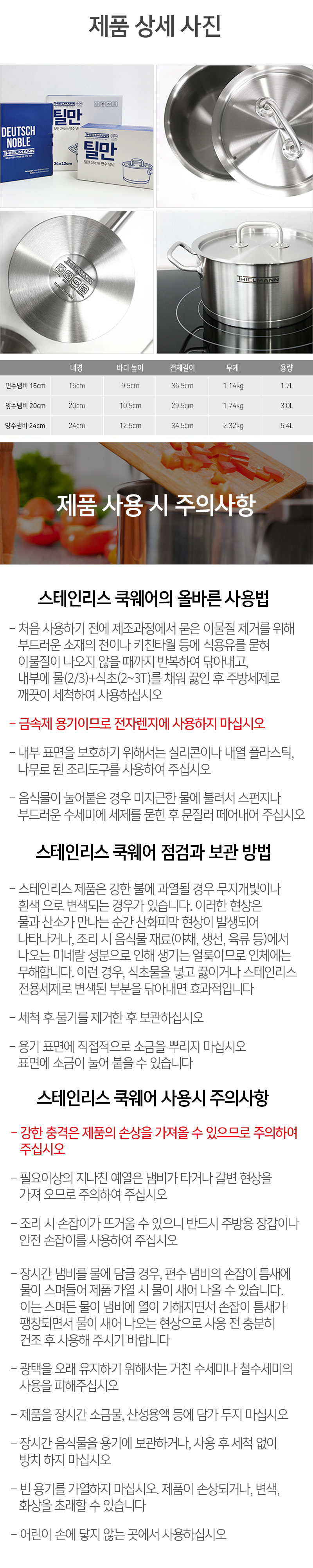 [5차] 틸만 인덕션 전용 프리미엄 3종 냄비