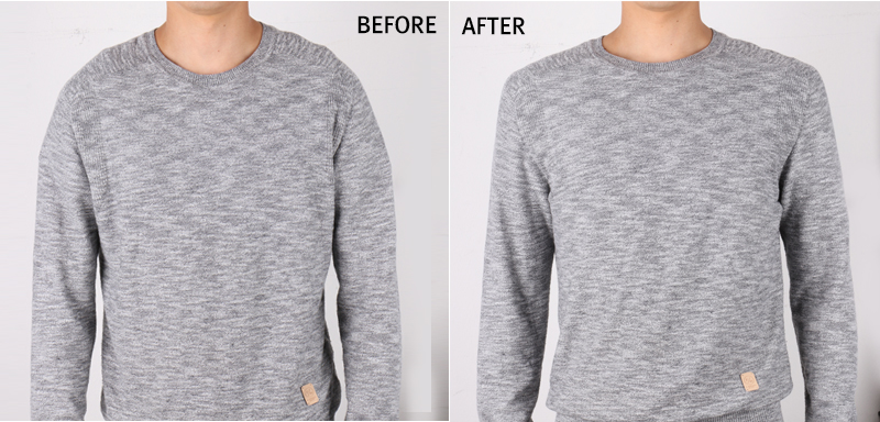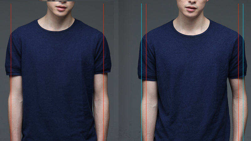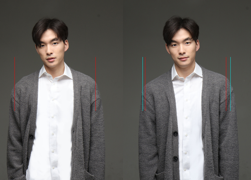 미션3. 착용 Before & After 사진과 함께 겉 옷을 입었을 때 티나지 않게 어깨가 넓어진다는 점을 비교 및 강조해주세요.
