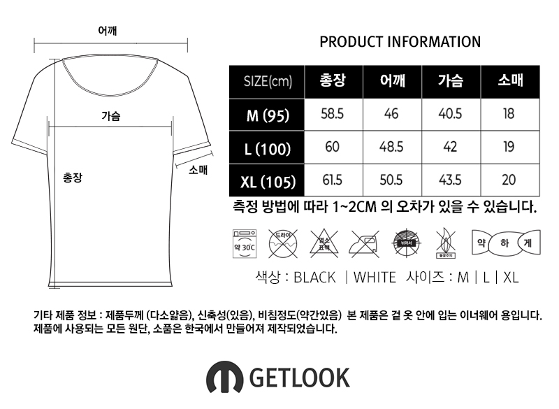GETLOOK 남자 어깨보정티 (색상 블랙, 화이트 중 선택/사이즈 M(95), L(100), XL(105) 중 선택)