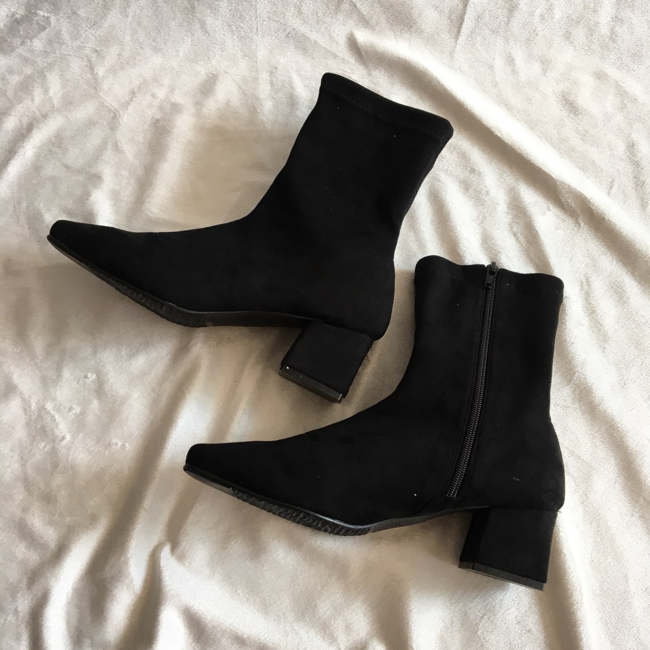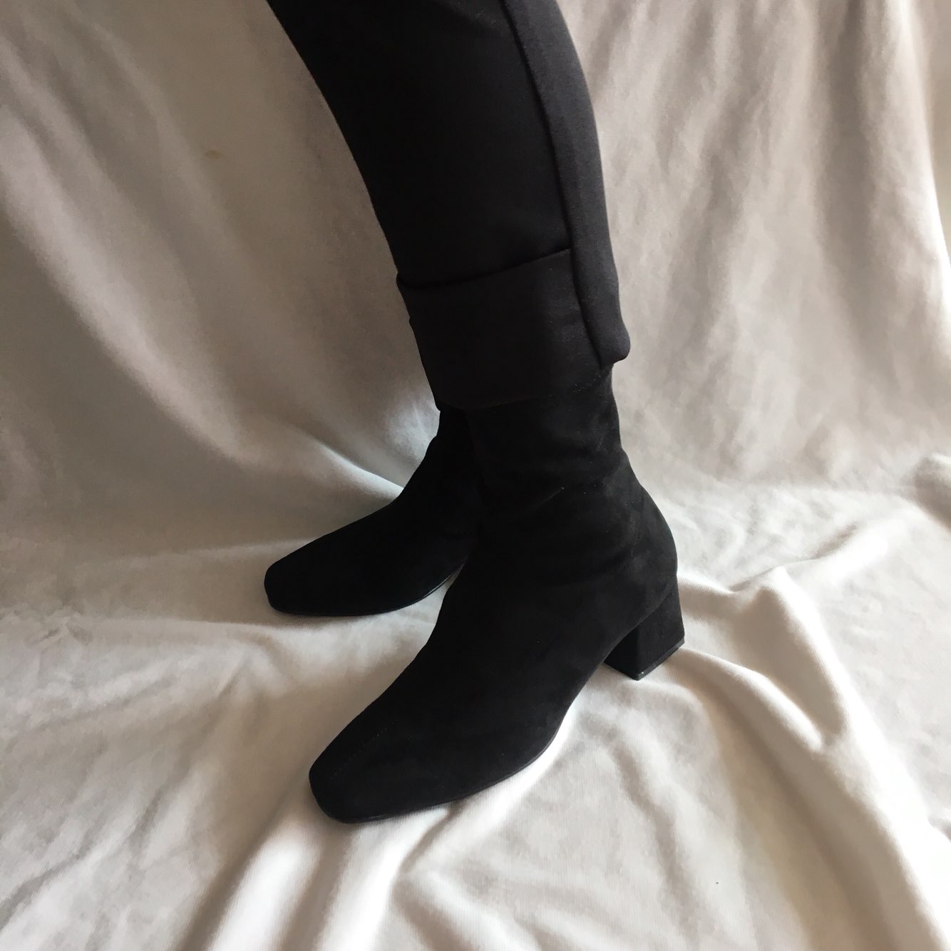 미션1. 제목에는 제품명(메이아망뜨 스웨이드 삭스 통굽 앵클부츠)을 반드시 포함해주세요.