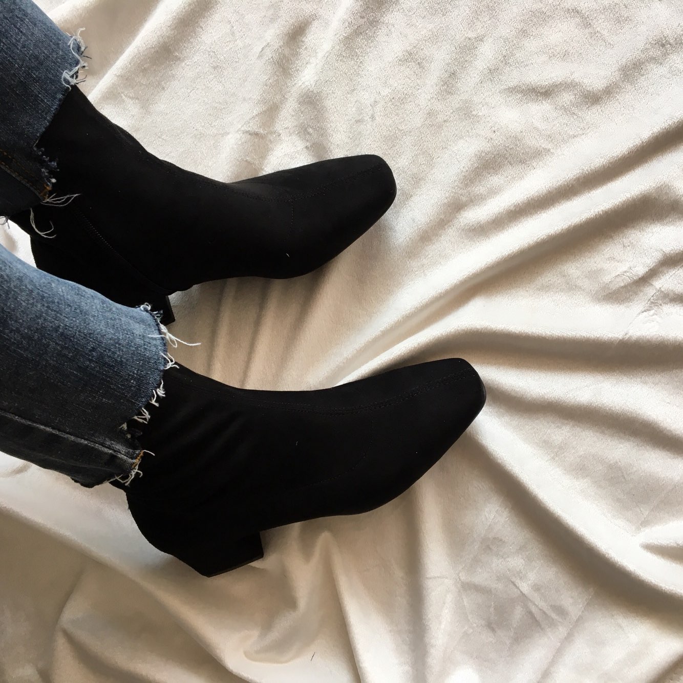 여자부츠코디, 통굽앵클부츠, 스웨이드앵클부츠코디