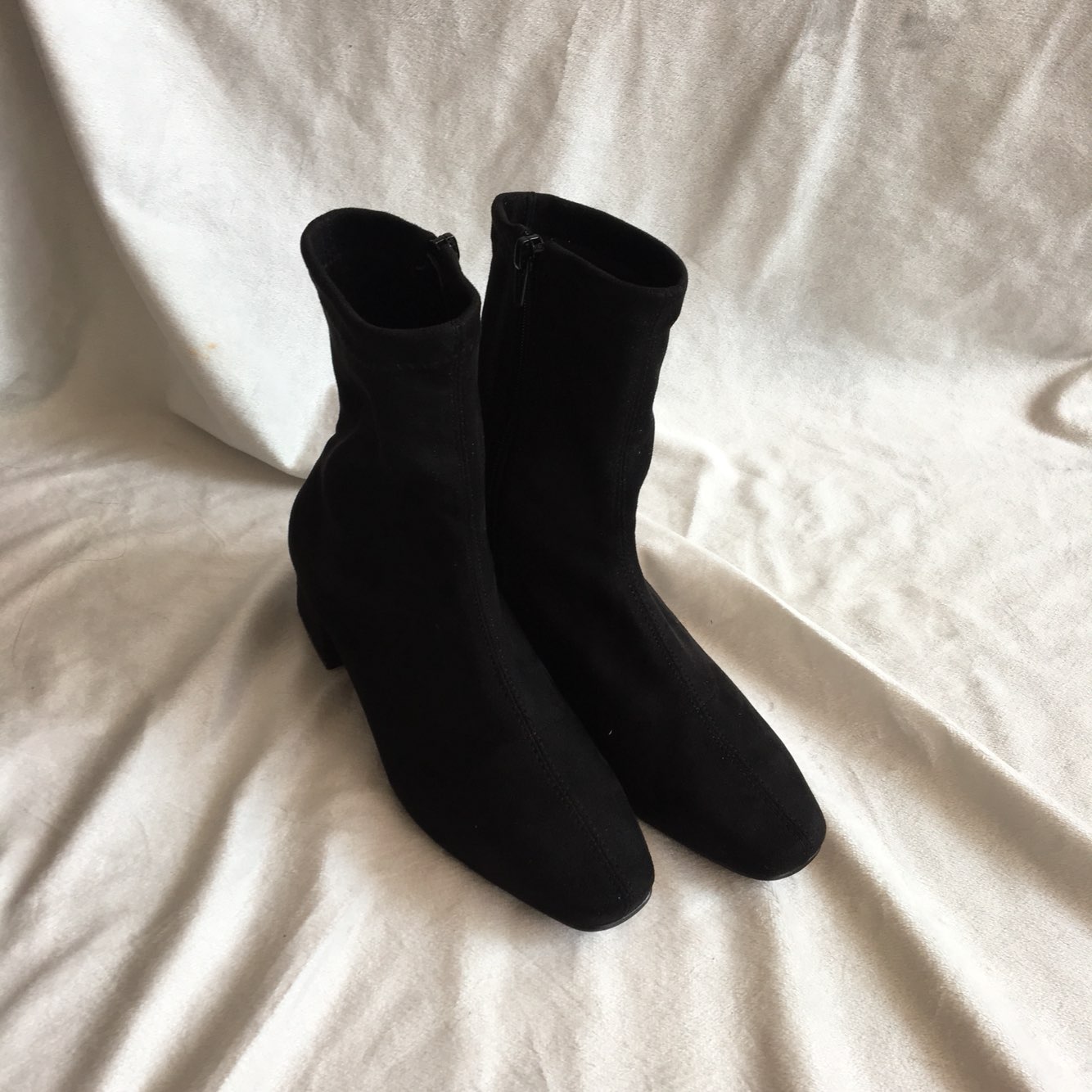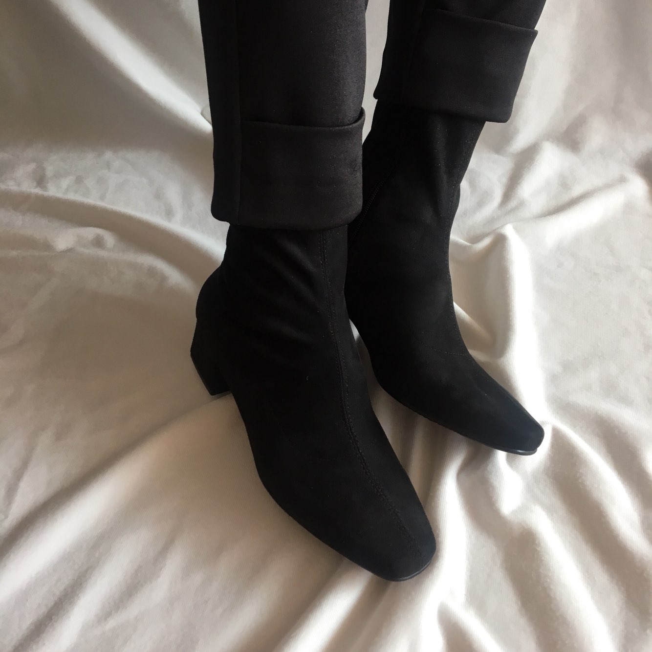 메이아망뜨 스웨이드 삭스 통굽 앵클부츠 (블랙) / 5명