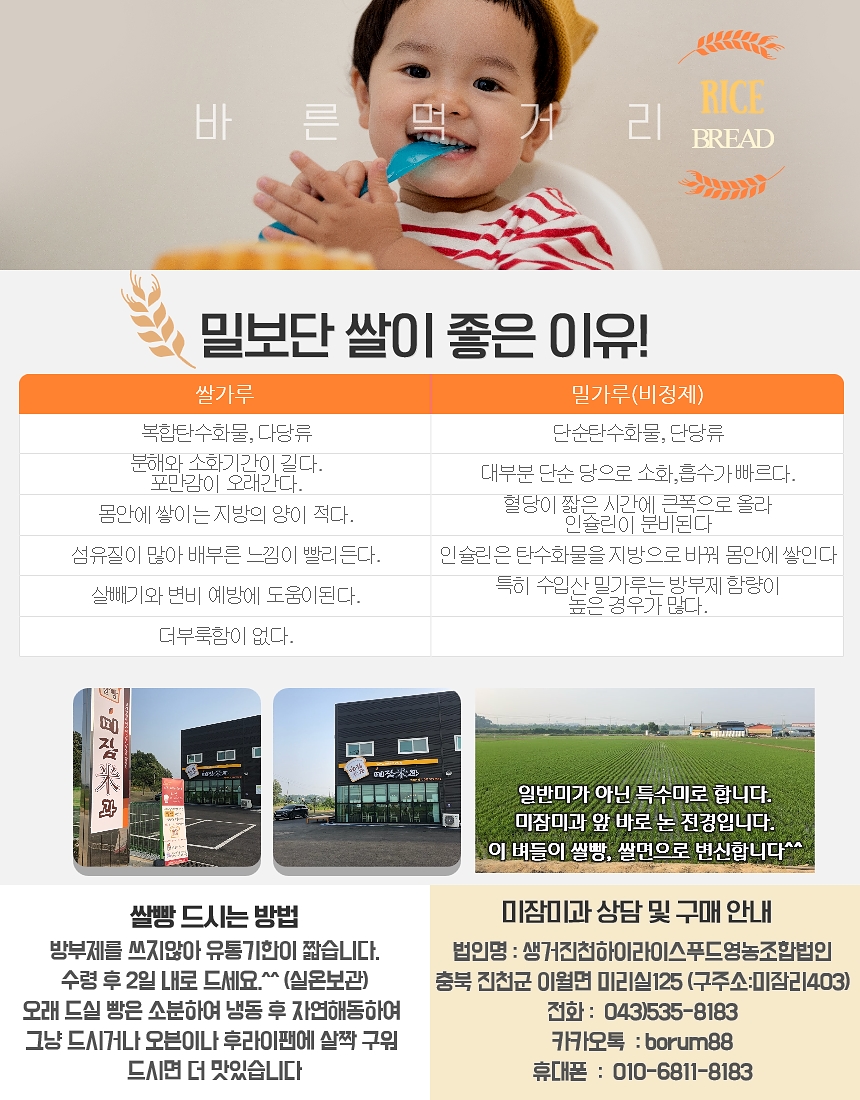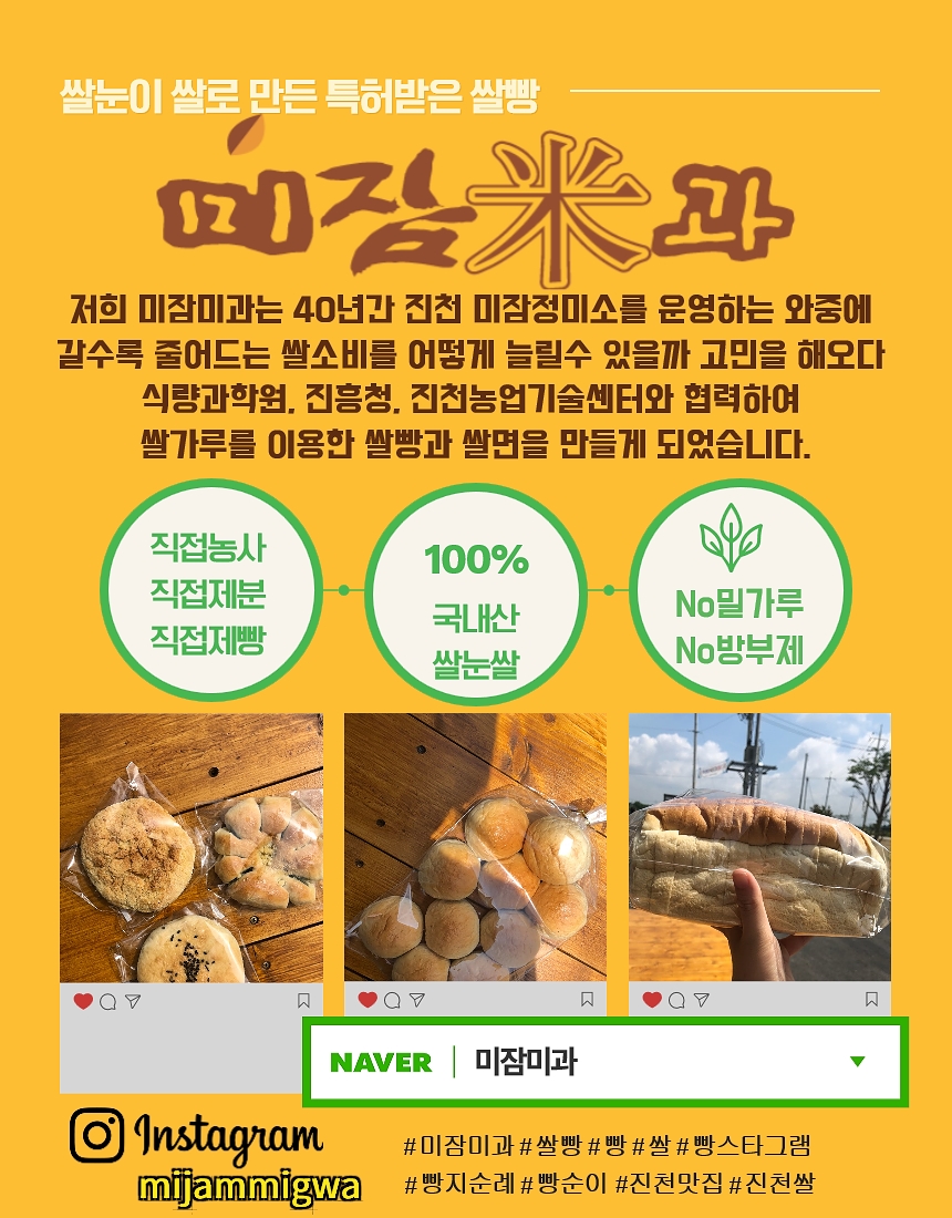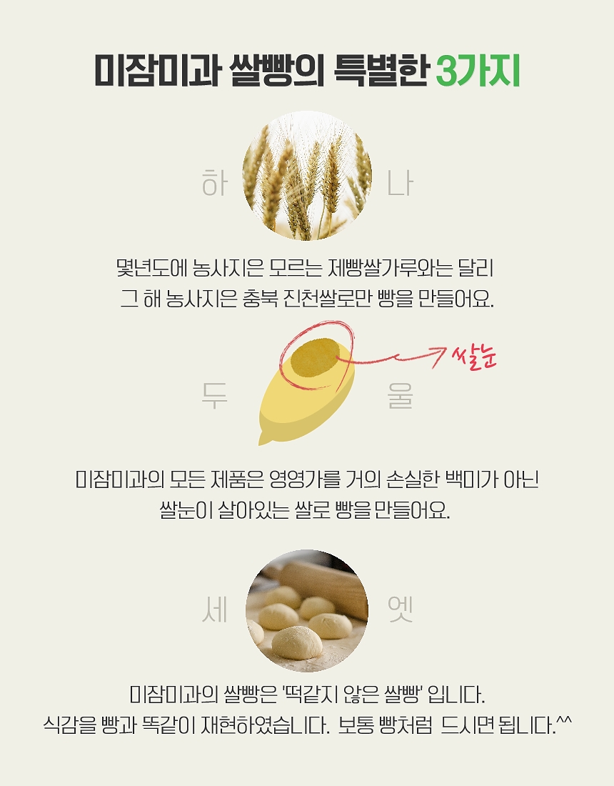 무엇보다도 토질 좋기로 소문난 진천에서 나온 쌀이 좋아서 더 맛있는 쌀빵이 나오게 된것같습니다.