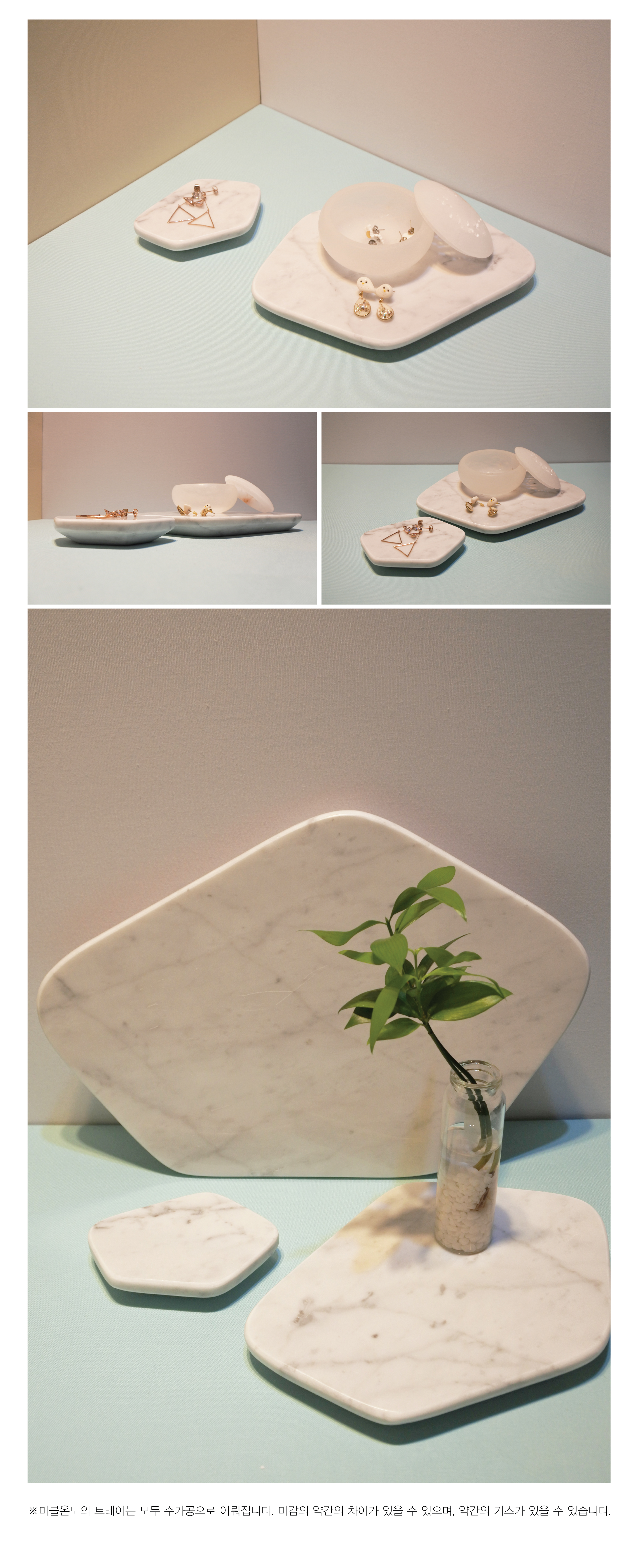 마블온도 천연 대리석 둥근 비정형 트레이 (대)