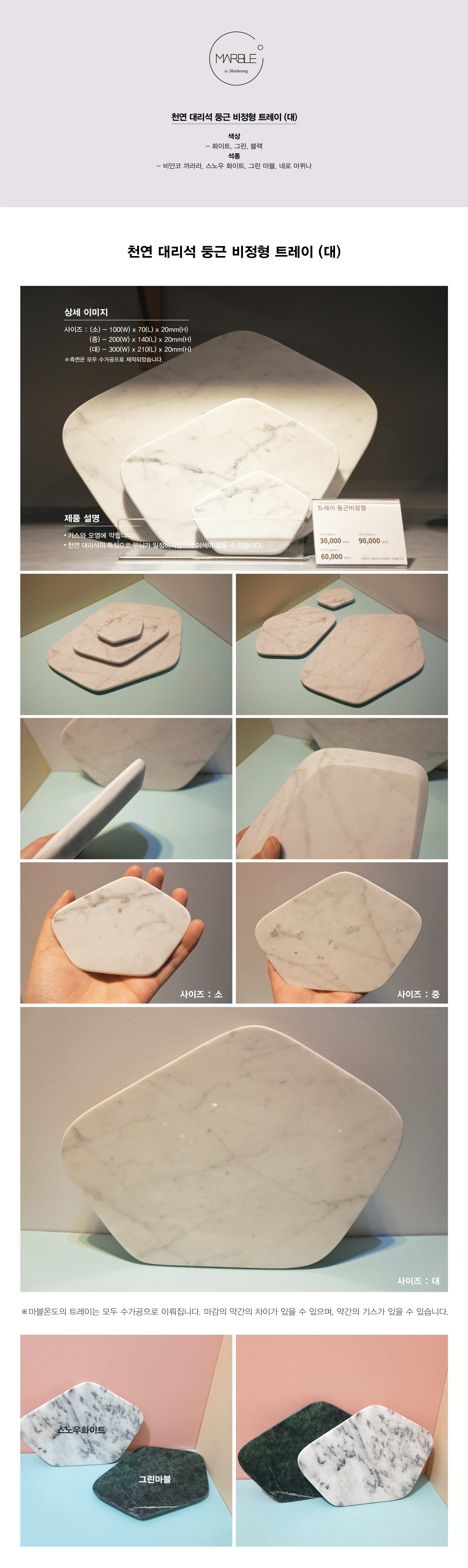 [인스타] 마블온도 천연 대리석 둥근 비정형 트레이 (대)
