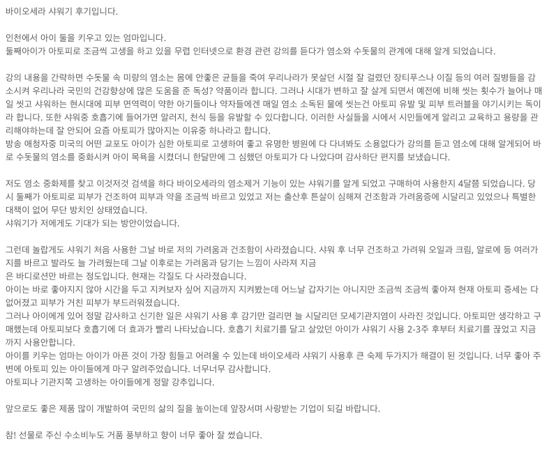 미션1. 내용에는 제품명(바이오세라 프리미엄 샤워기헤드)을 반드시 포함해주세요.