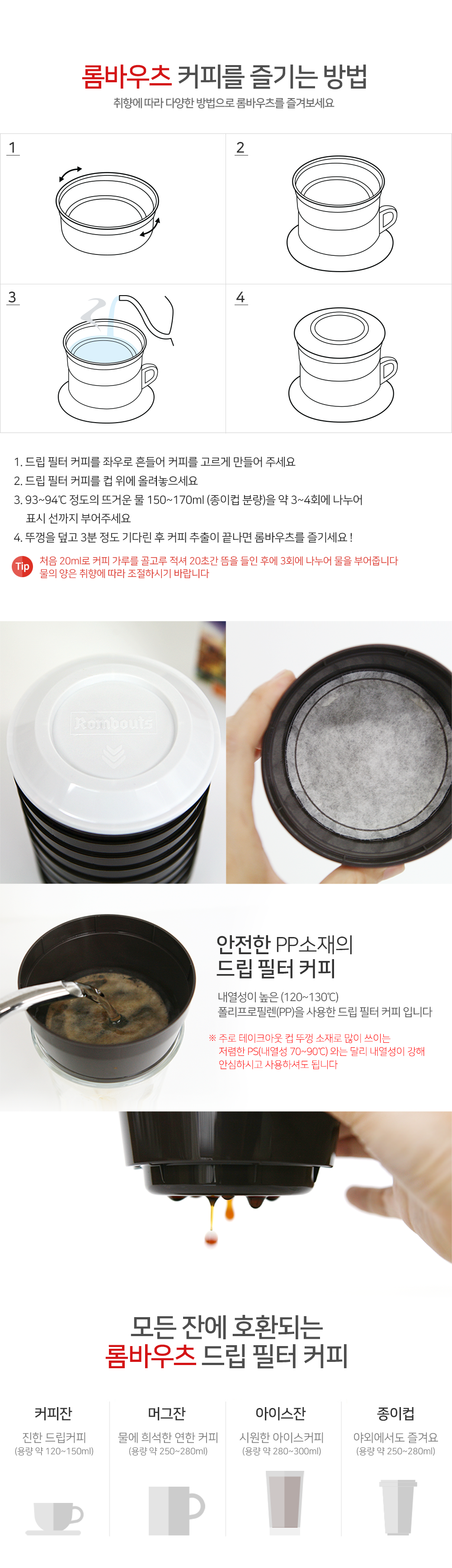 - 롬바우츠 드립필터커피를 사용해 커피를 드립하는 동영상 및 사진 필수