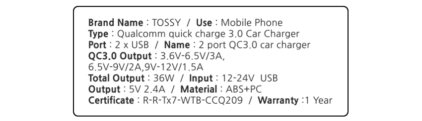 토씨 퀄컴 듀얼 퀵차지 3.0