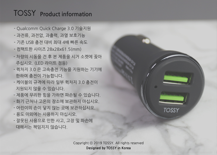 최대 4배 빠른 충전이 가능한 TOSSY 퀄컴 퀵차지 3.0