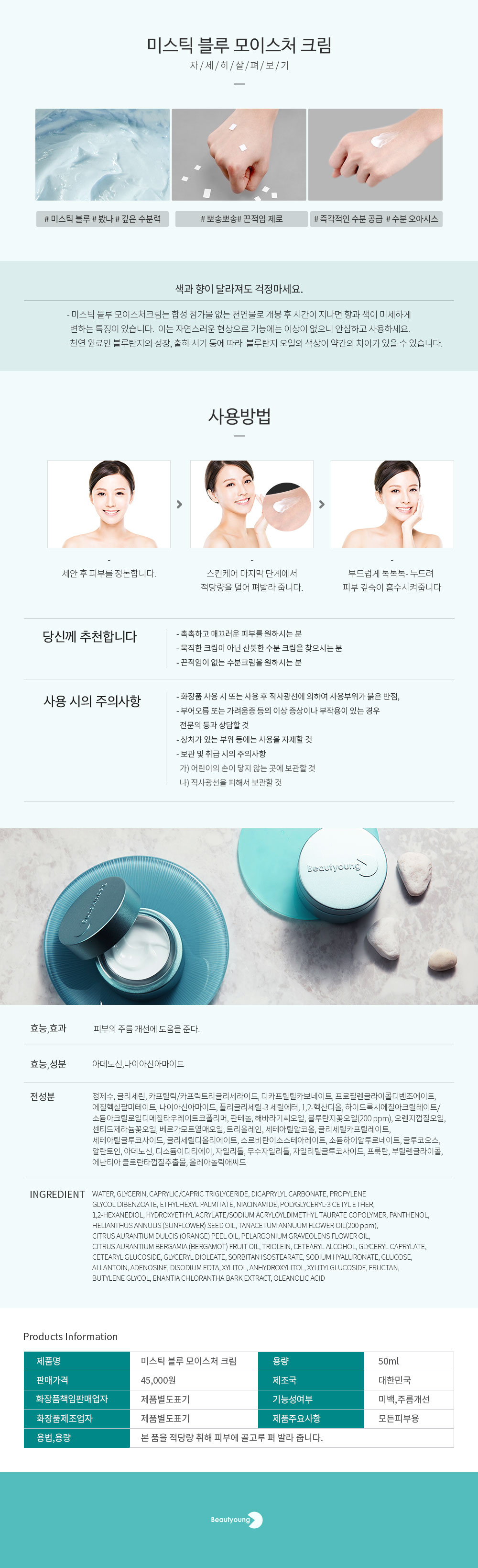미션1. 리뷰 제목에는 제품명(뷰티영 미스틱블루 히알루론산 수분크림)을 반드시 포함해주세요.