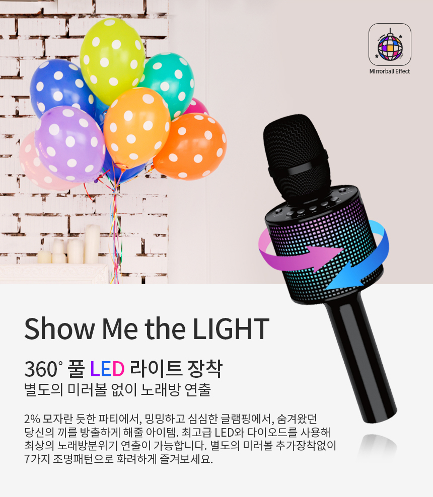 # 7가지 컬러 LED가 내장되어 반주에 반응하며 반짝입니다.