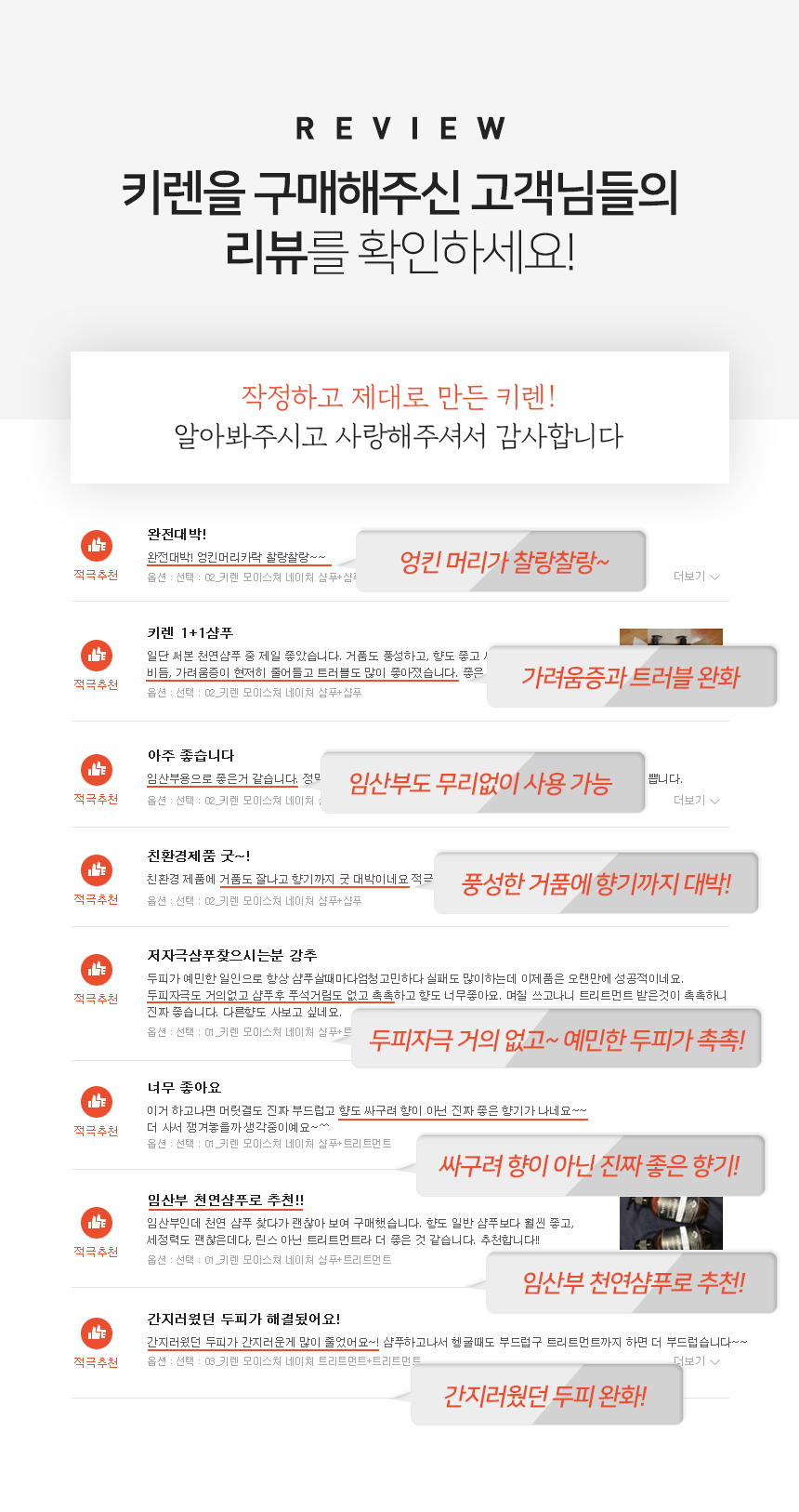 |  | 미션1. 리뷰 내용에는 제품명(키렌 모이스처 네이처 샴푸&트리트먼트)을 반드시 포함해주세요. 미션2. 동영상은 1개 이상, 사진은 5장 이상 첨부해주세요.  - 셀카 첨부 필수    - 제품 시연컷 필수 ( 펌핑, 거품)  - 제품 사용 BEFORE & AFTER 비교컷 필수  미션3. 너무 노골적으로 포스팅에 제품을 광고하지 말아주세요. 미션4. 단순 제품 소개만이 아니라, '다른 제품과 비교하여 이 제품만이 가지고 있는 의미있는 특이점'들을 찾아 세부적으로 묘사해주세요. 미션5. 다음 내용으로 포스팅을 마무리 해주세요.  - 개인적으로 제품에서 가장 마음에 들었던 점.  - 어떤 사람들에게 추천하는지, 어떤 사람들이 좋아할 것 같은지에 대한 제안   (※ 상품 상세페이지는 사용하지 말아주세요.) |  |