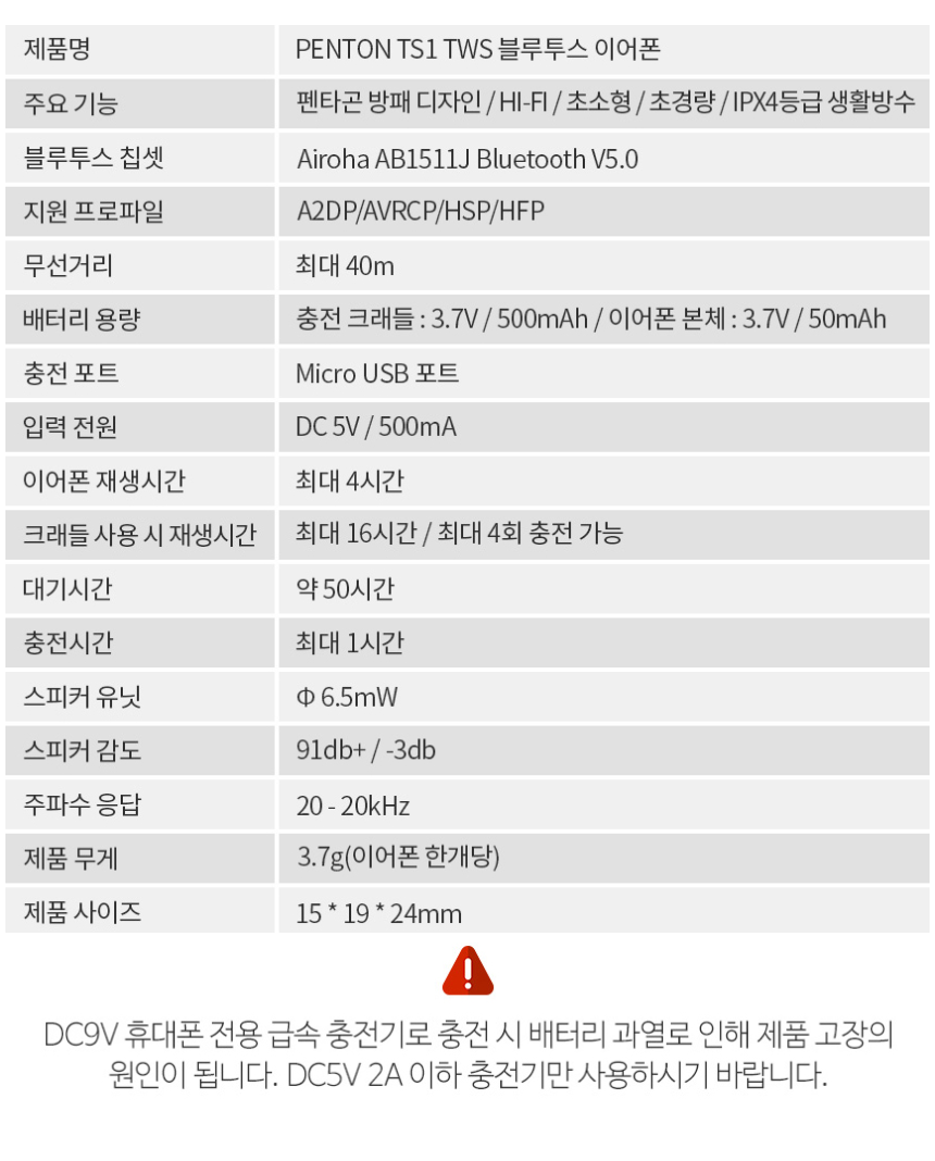 | 제공내역 | 펜톤TS1 블루투스이어폰 ※ 색상 랜덤 (블랙, 화이트)