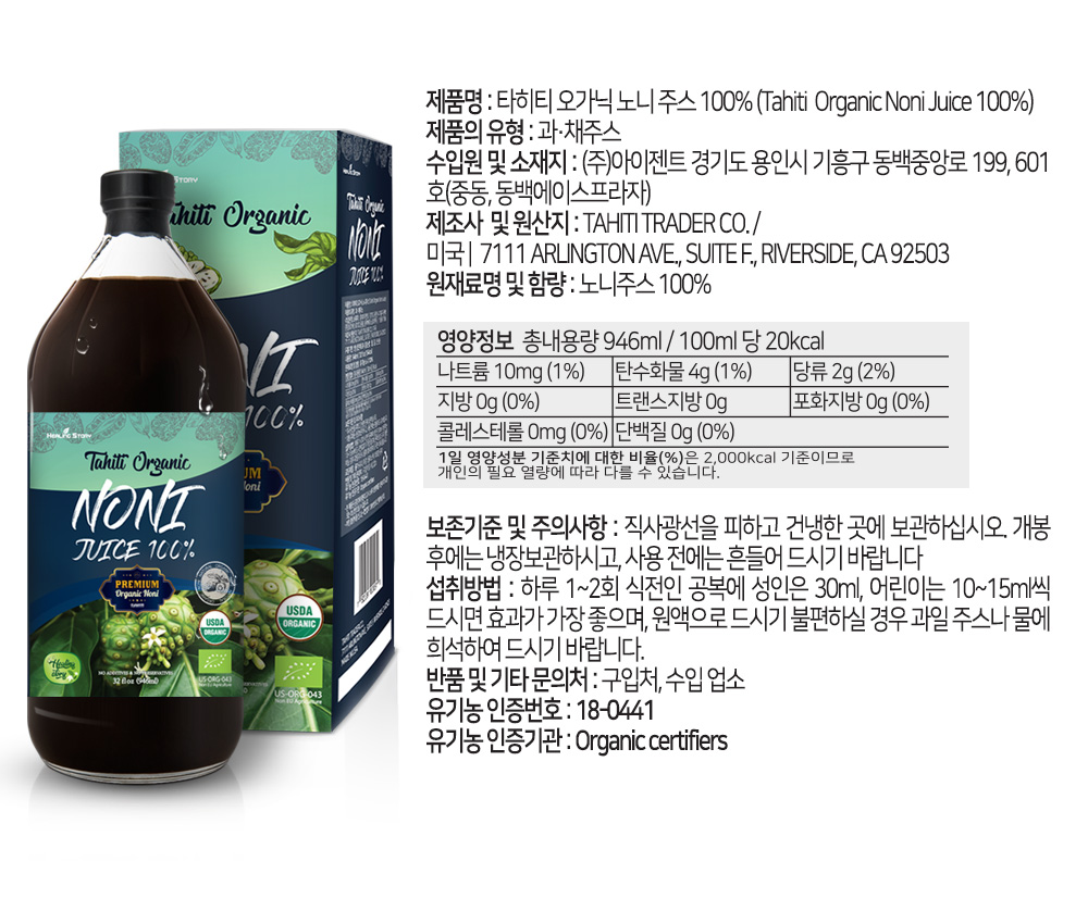 유기농 노니원액 100% 946ml 미국 제품은오랜 숙성기간으로 맛이 부드럽고