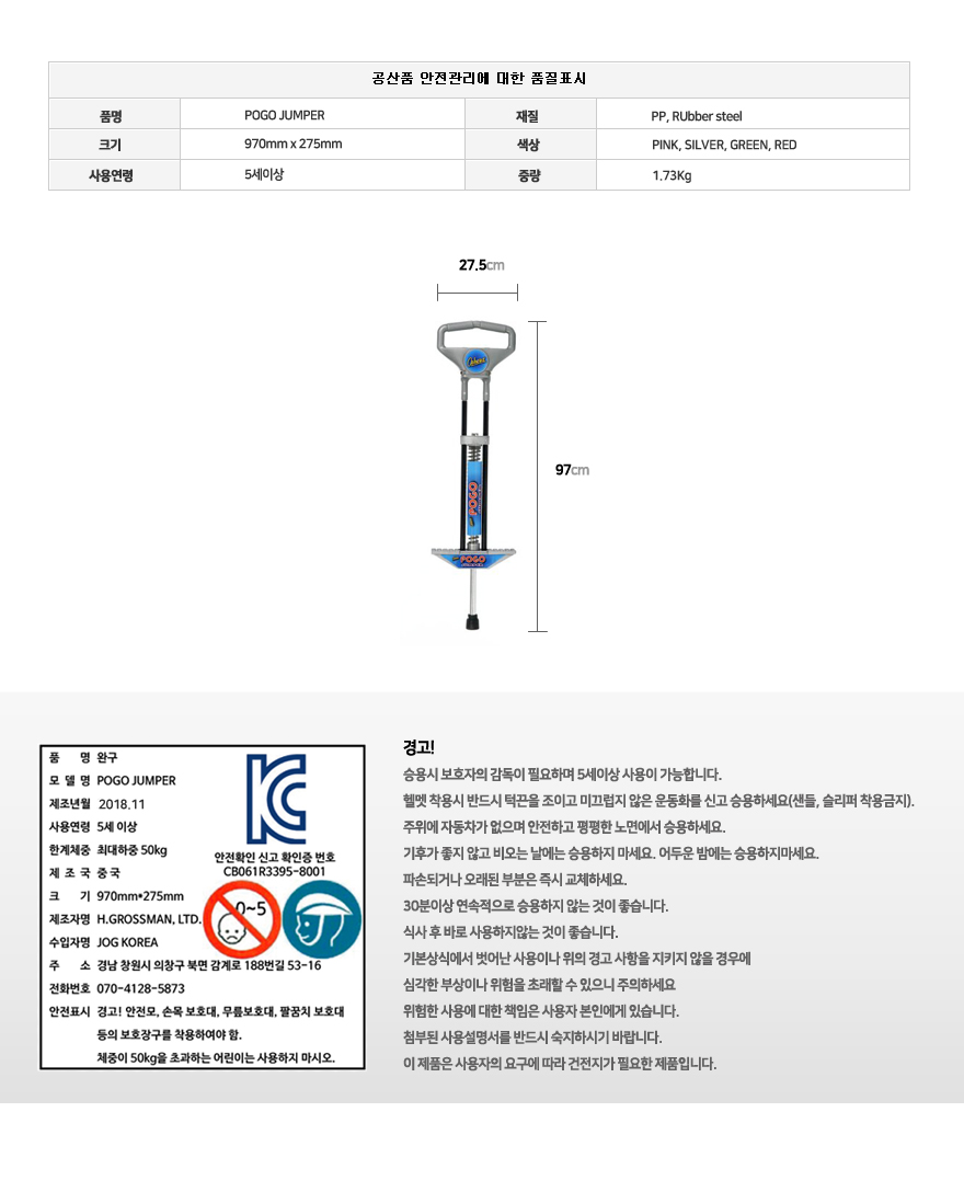 포고점퍼는 어린이화학인증까지 합격한 제품입니다.