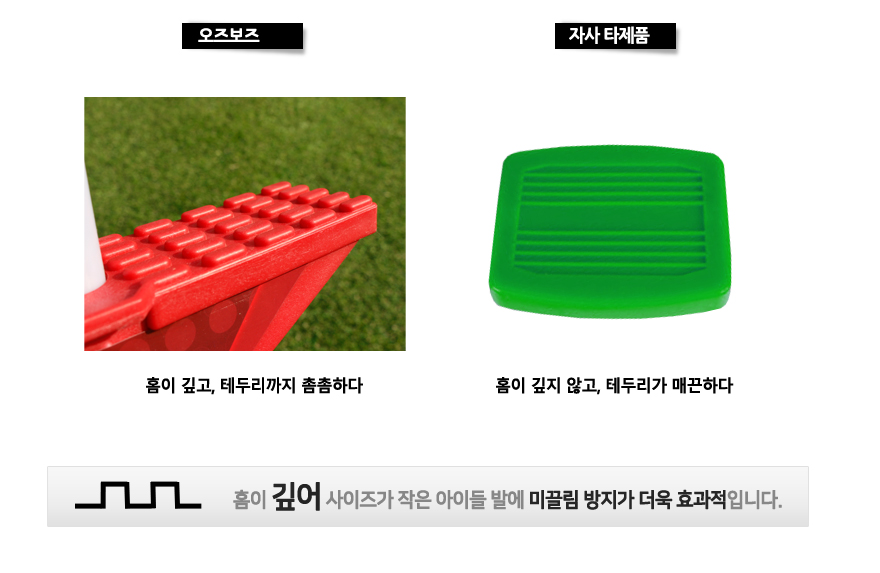 깊은 홈 으로 발이 미끄러질 염려 DOWN