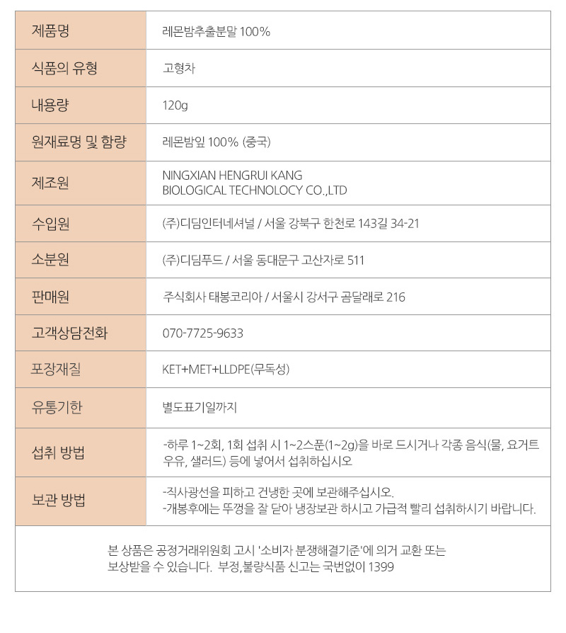 제공내역 머거요 20배농축 레몬밤 추출분말