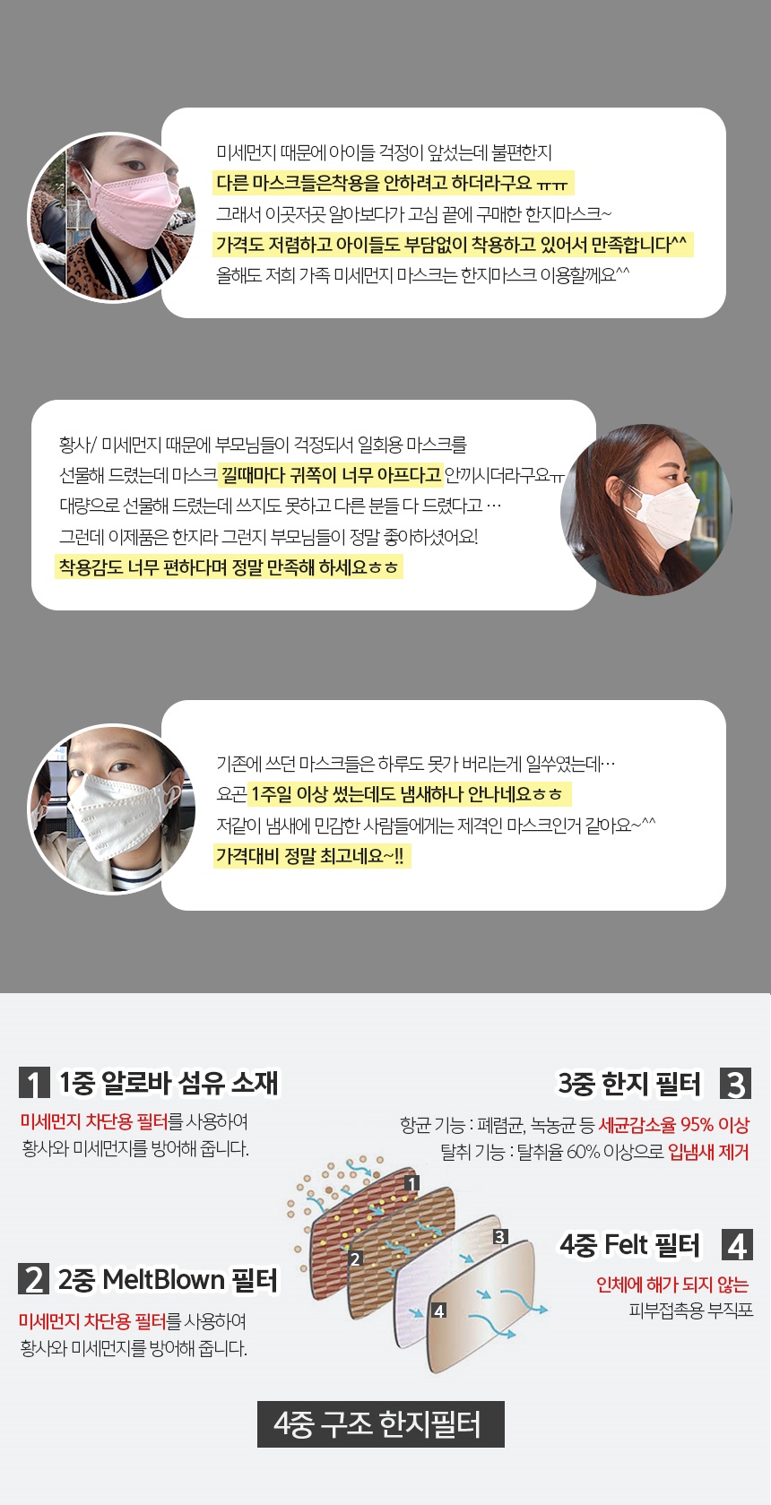 제공내역 스마트7 초미세먼지 한지마스크 KF80 3개(흰색,파랑,분홍)+KF94 1개(흰색)