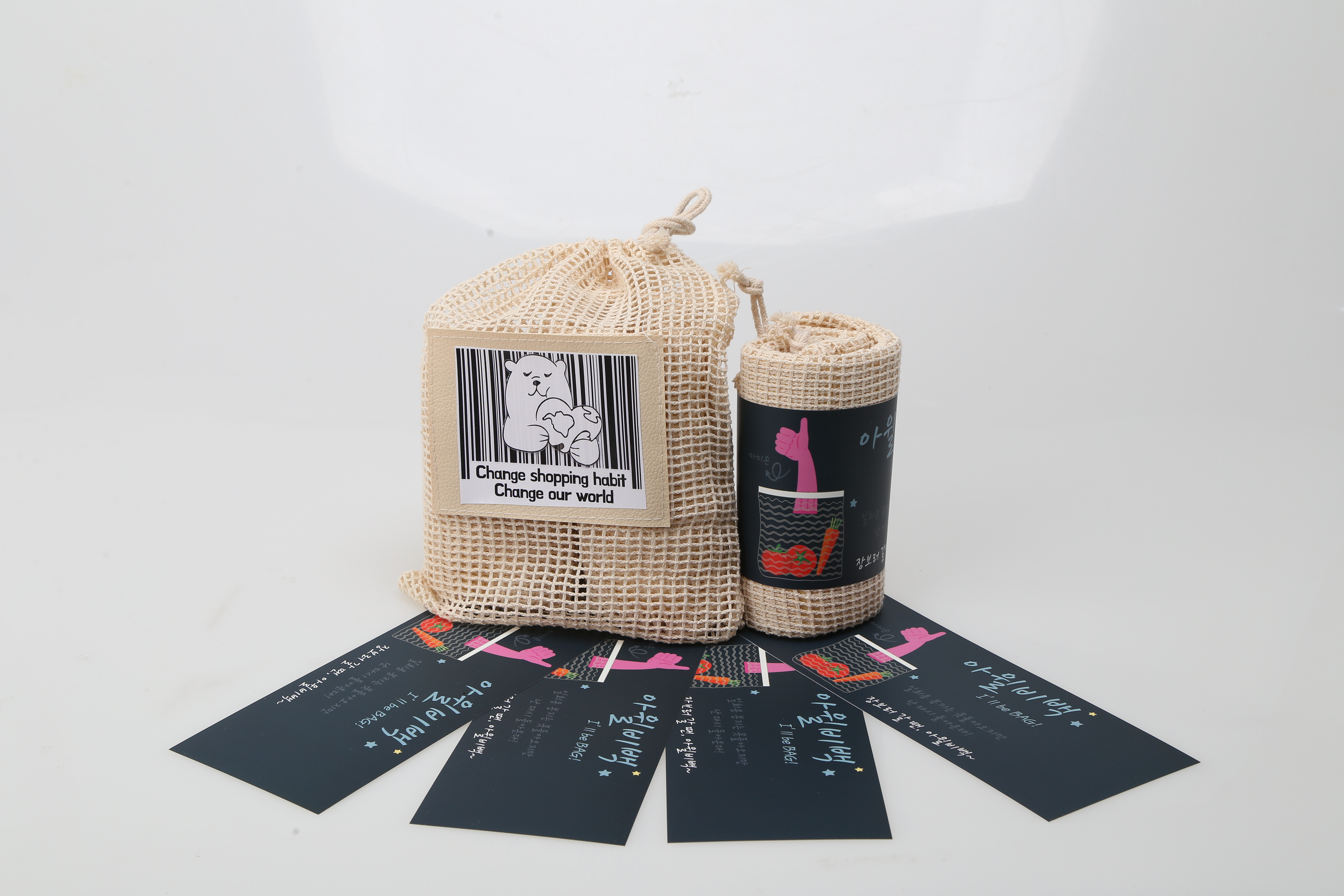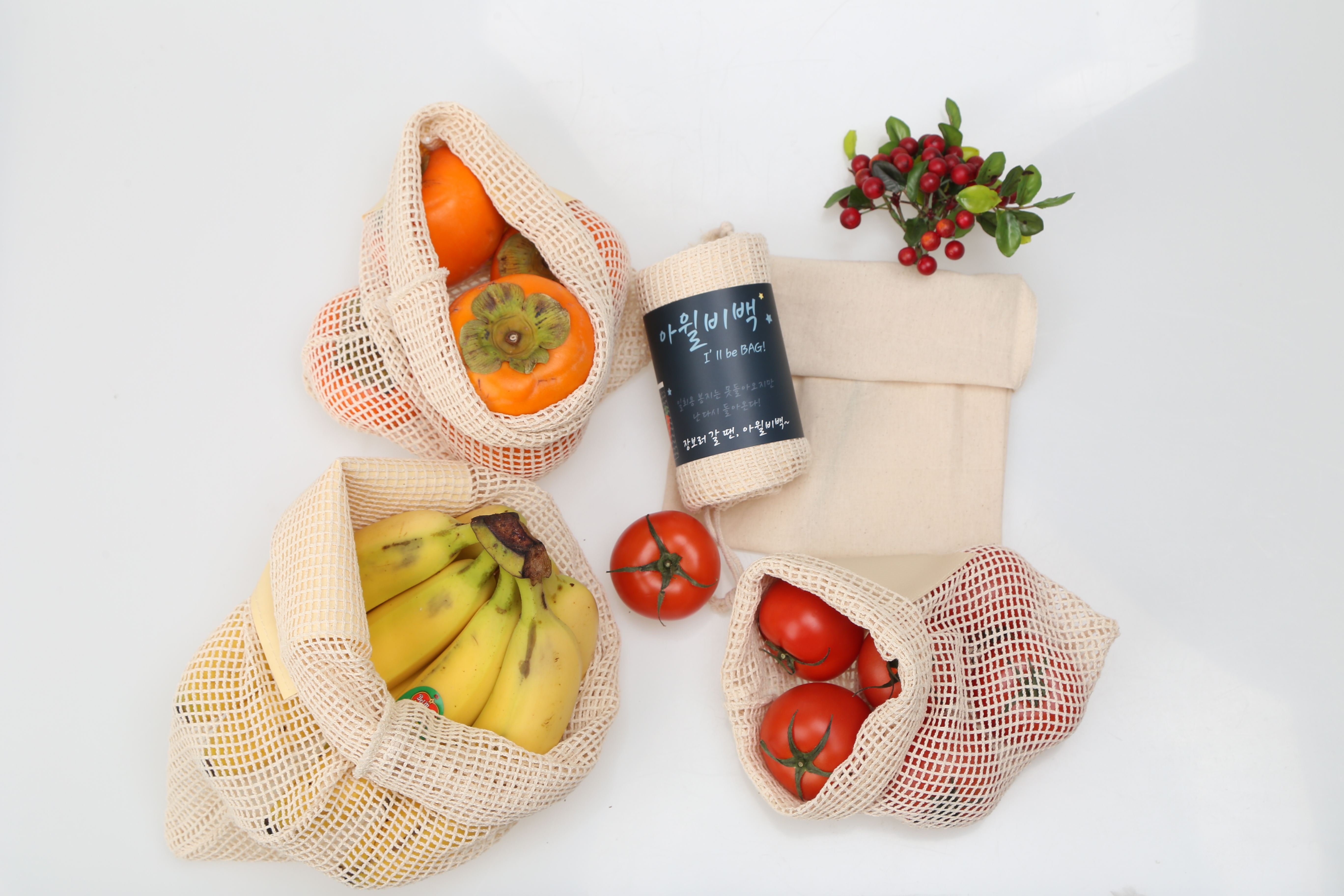 I'll be BAG은 신선한 과일과 채소를 그대로 담을 수 있는 서브 장바구니입니다. 유기농 면 장바구니로 마켓에서 무분별하게 사용되는 일회용 봉지 사용을 줄이기 위한 상품이자 캠페인 입니다.