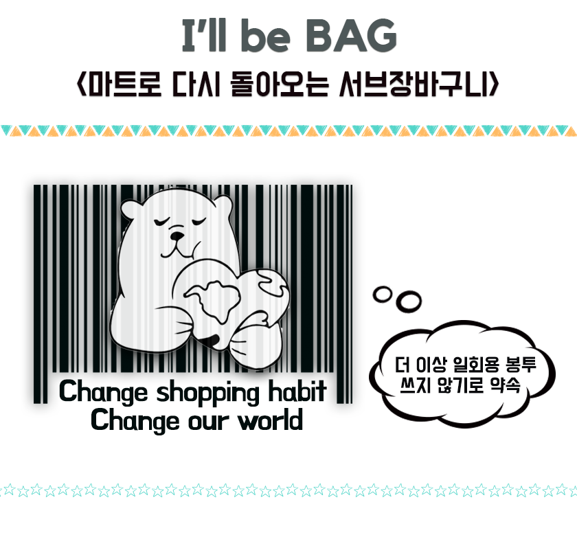 일회용 봉지는 다시 마트로 돌아올 수 없지만, 아윌비백은 재사용을 통해 '마트로 다시 돌아갈 수 있다'는 의미를 담고 있습니다.