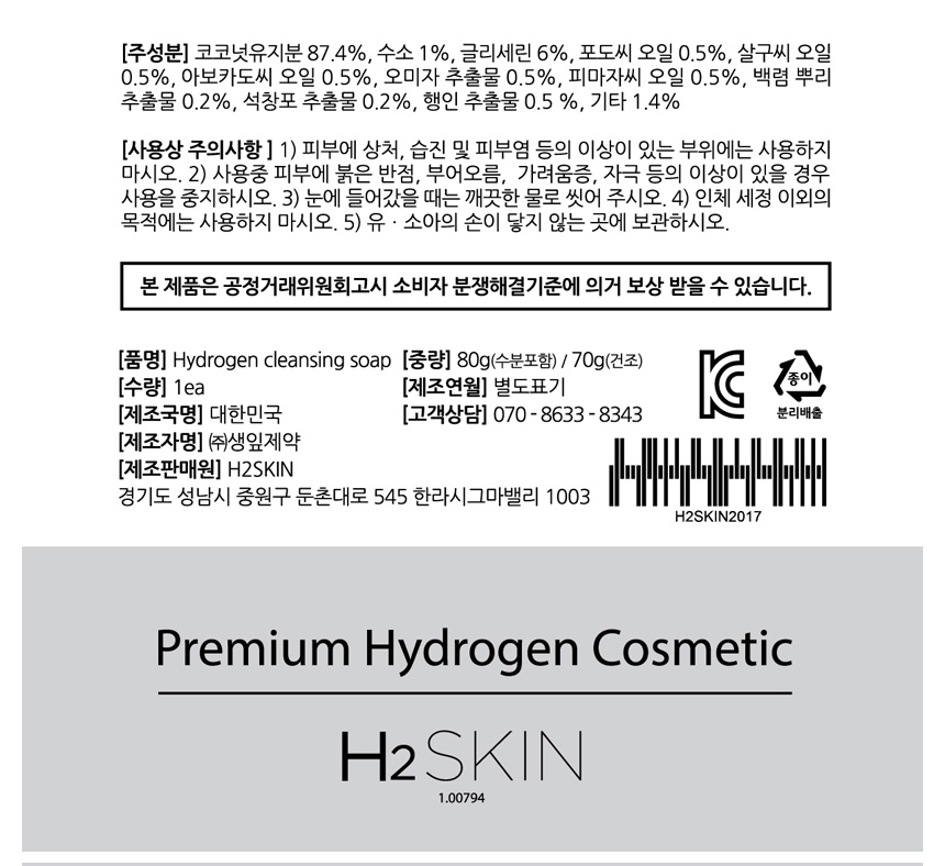 H2SKIN 프리미엄 수소비누에