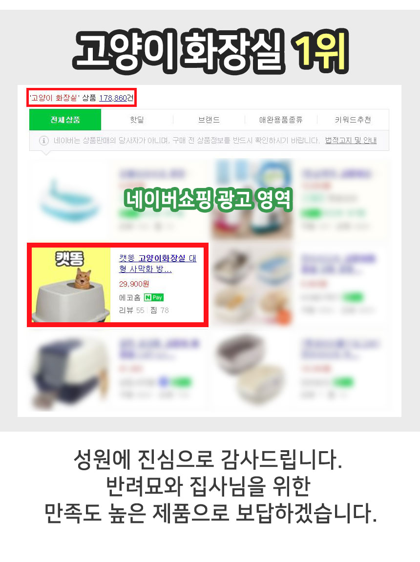 미션1. 리뷰 제목에는 제품명(고양이 탑엔트리 화장실 캣똥)을 반드시 포함해주세요.