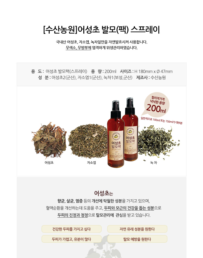 #수산농원어성초스프레이 #어성초스프레이 #어성초발모팩 #건어성초 #어성초발모스프레이 #수산농원어성초 #탈모예방어성초 #탈모방지어성초 #탈모어성초 #탈모토닉탈모케어 #두피관리두피케어