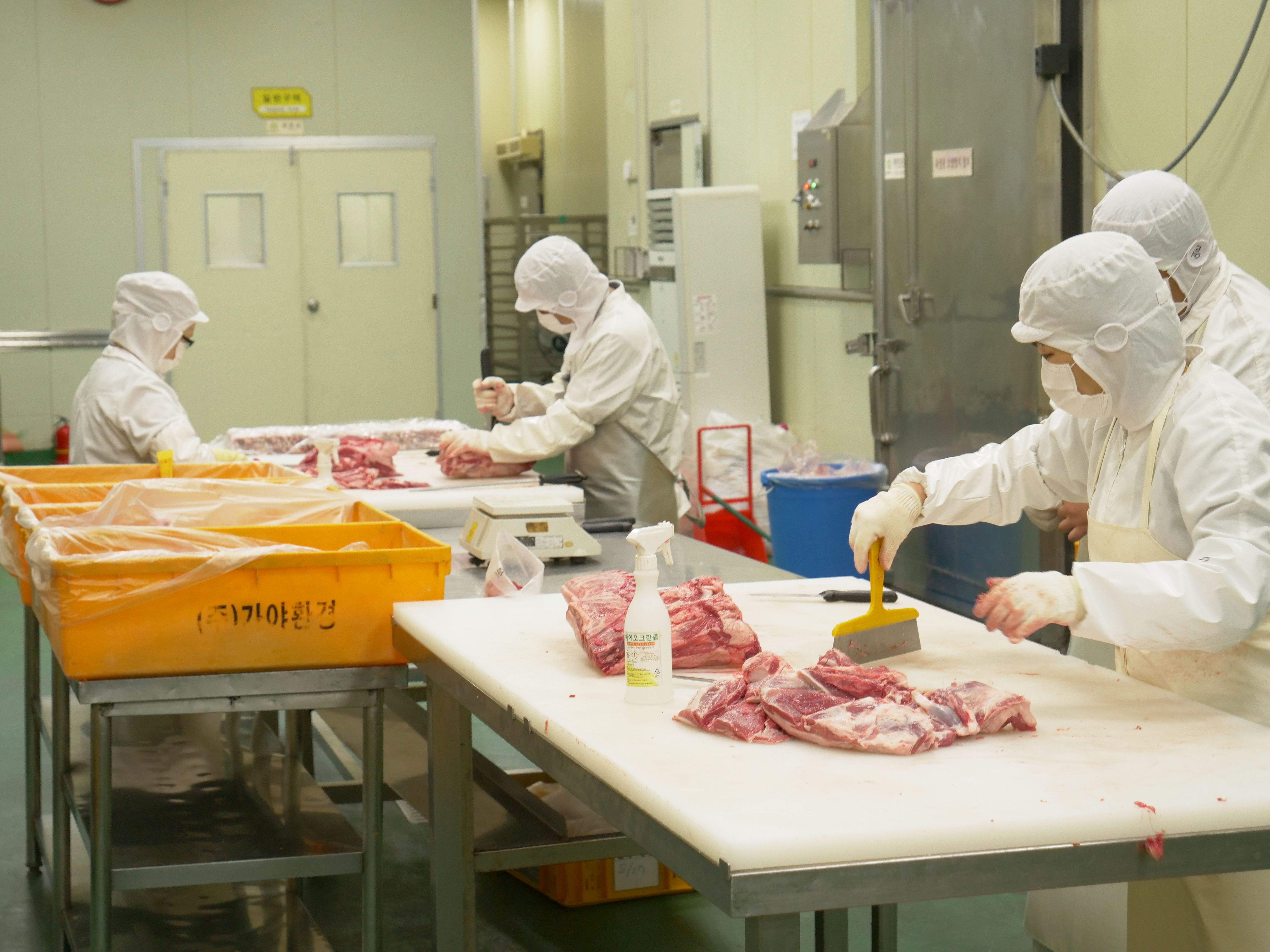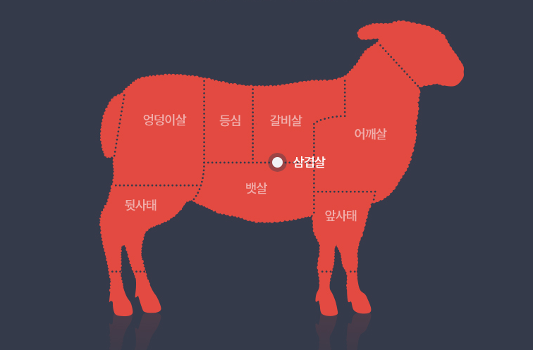 어깨살을 많이 사용하고 돼지 삼겹살처럼