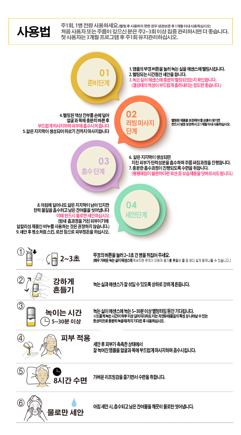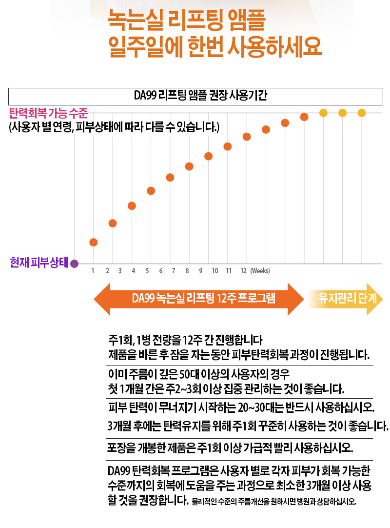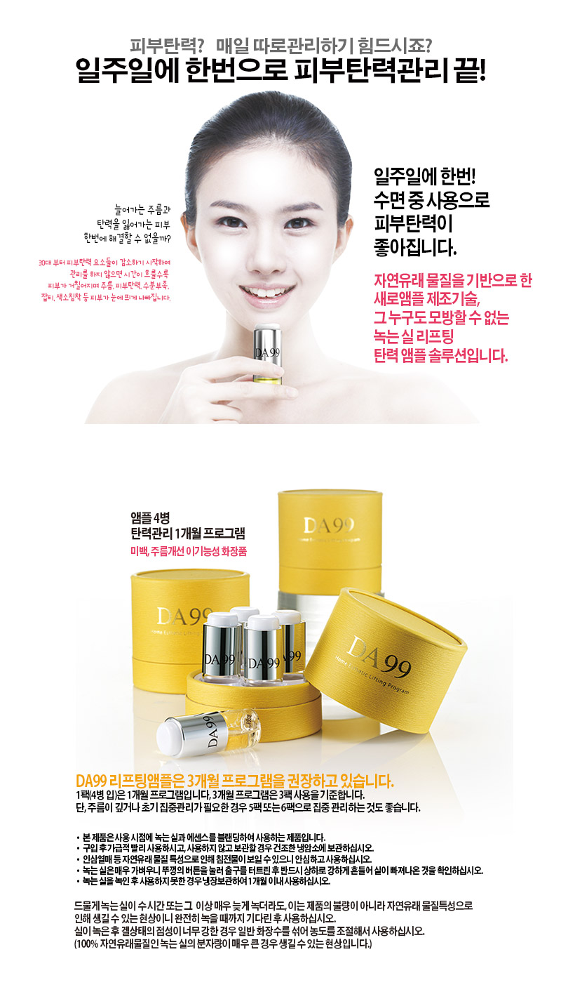 - 실리프팅앰플 DA99는 수면 8시간 동안 피부를 젊게 돌려준다는 점