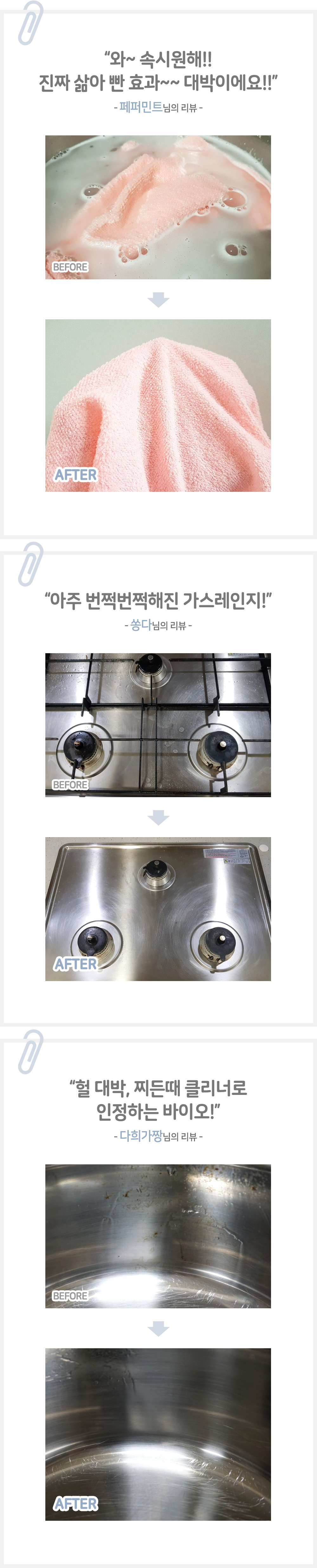 파워버블 클린파우더와 함께라면 주방에 흔히 생기는 냄비 탄자국, 기름때로 얼룩진 가스레인지와 항상 더러워져 있는 배수구까지 깨끗하게 청소 가능합니다. 주방세제로 해결하지 못한 고민을 파워버블 클린파우더 하나로 해결 가능합니다.
