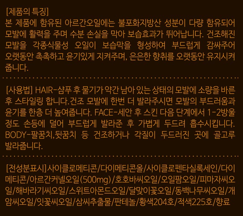 제공내역 라온 블랙 아르간 오일100㎖ 1개
