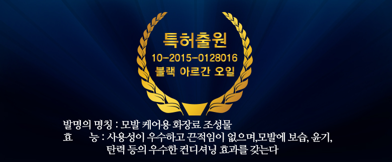 - 특허출원 효능:사용성이 우수하고 끈적임이 없으며,모발에 보습,윤기 탄력등의 우수한 컨디셔닝 효과를 갖는다 강조