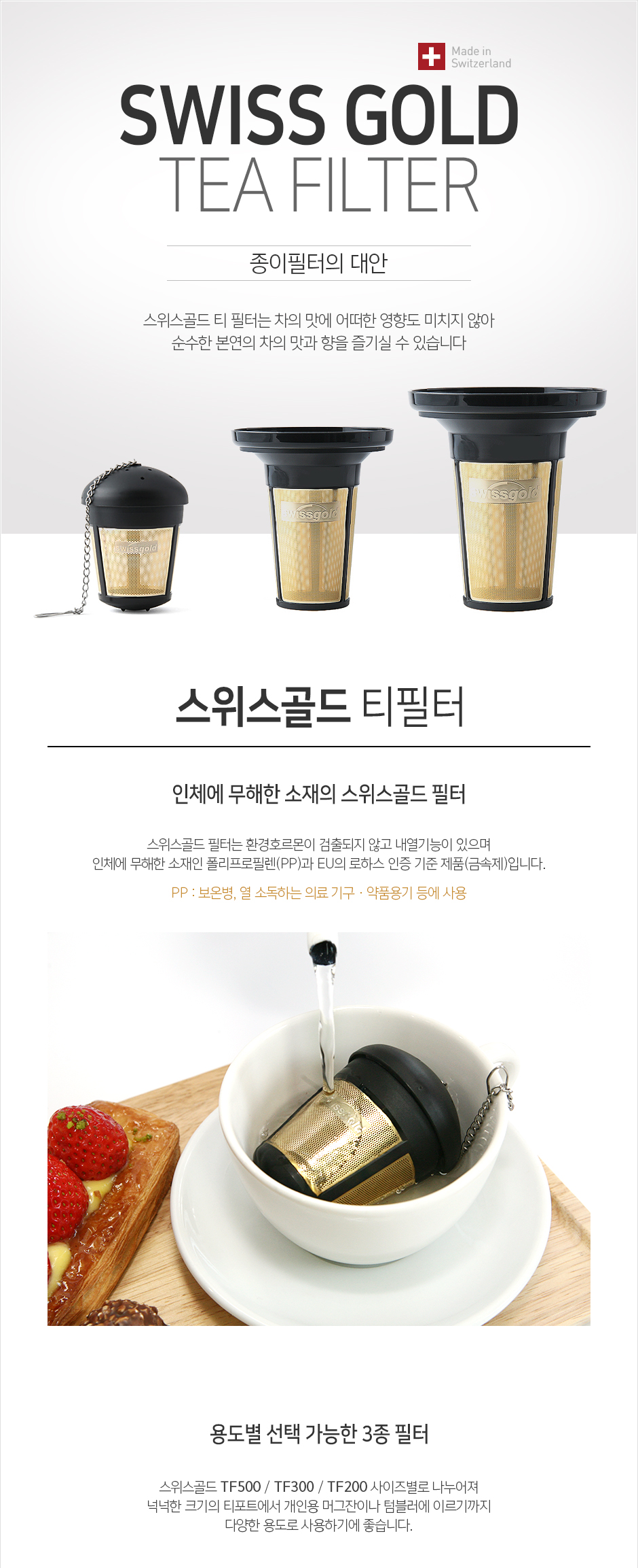 ② 거름망은 순금도금 처리를 하여 표면이 부식되지 않아 위생적이고 반영구적으로 사용 가능한 친환경 제품입니다.