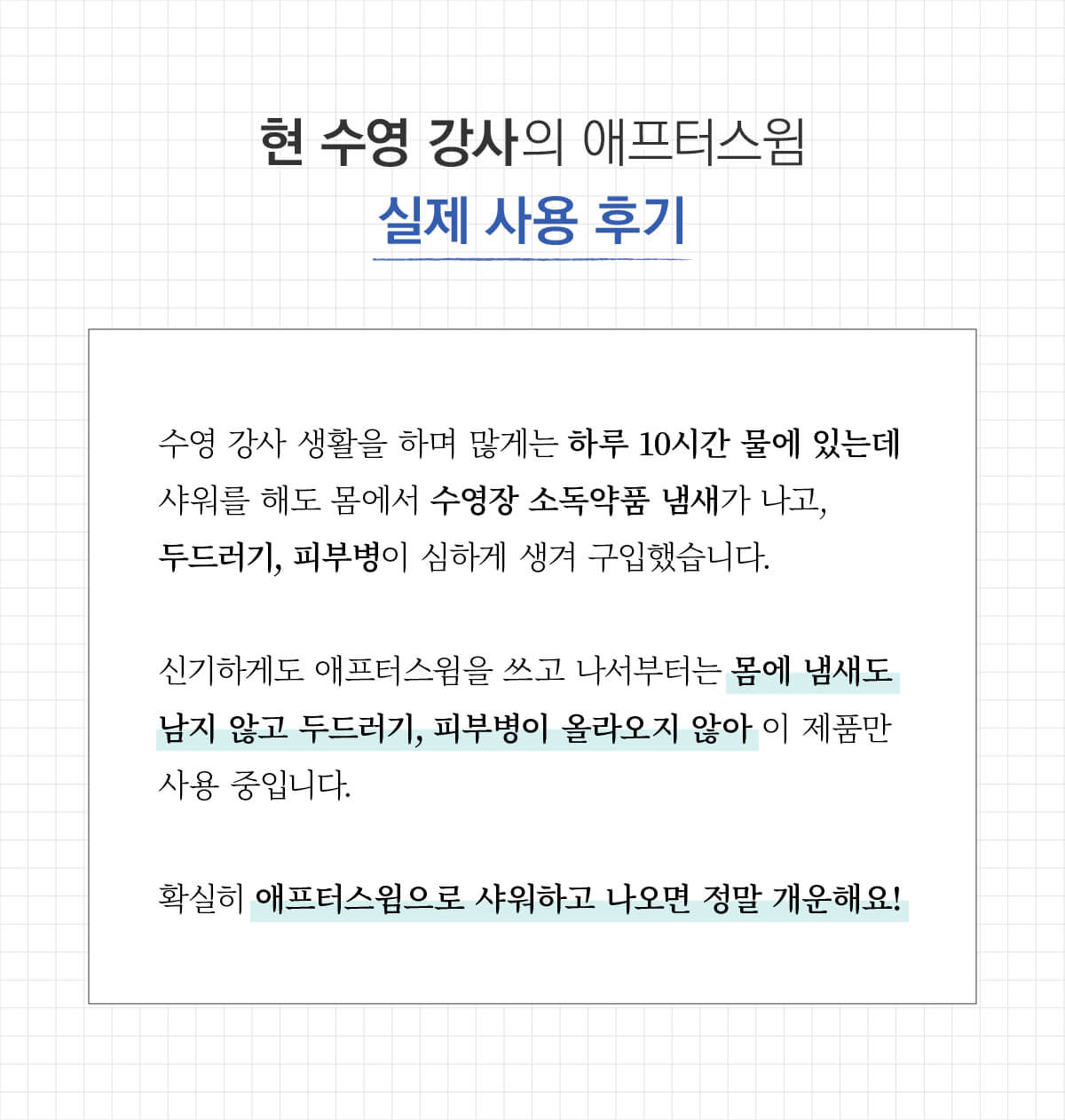 미션1. 리뷰 제목에는 제품명(애프터스윔 샴푸&바디클렌저&바디로션)을 반드시 포함해주세요.