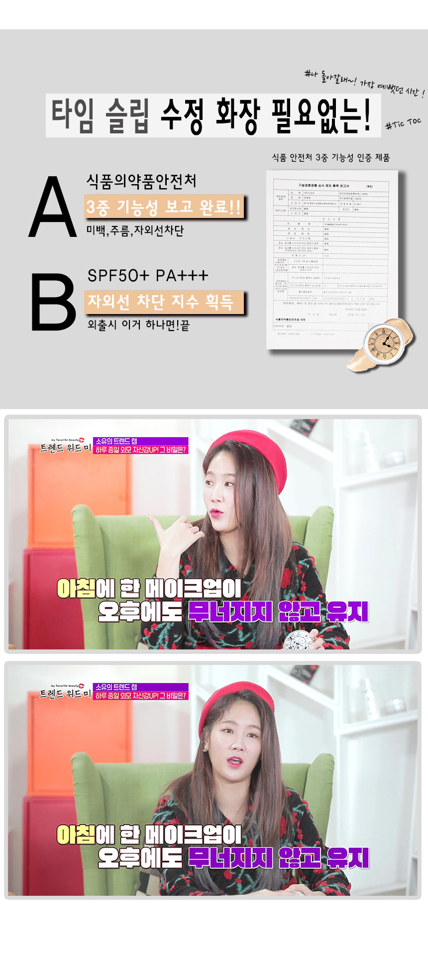 → 자연스러운 광을 원하면 수정화장 X / 오전에 바른 듯한 보송감을 원하면 수정 (취향에 맞게 : 방송에서 소유가 얘기한 부분)