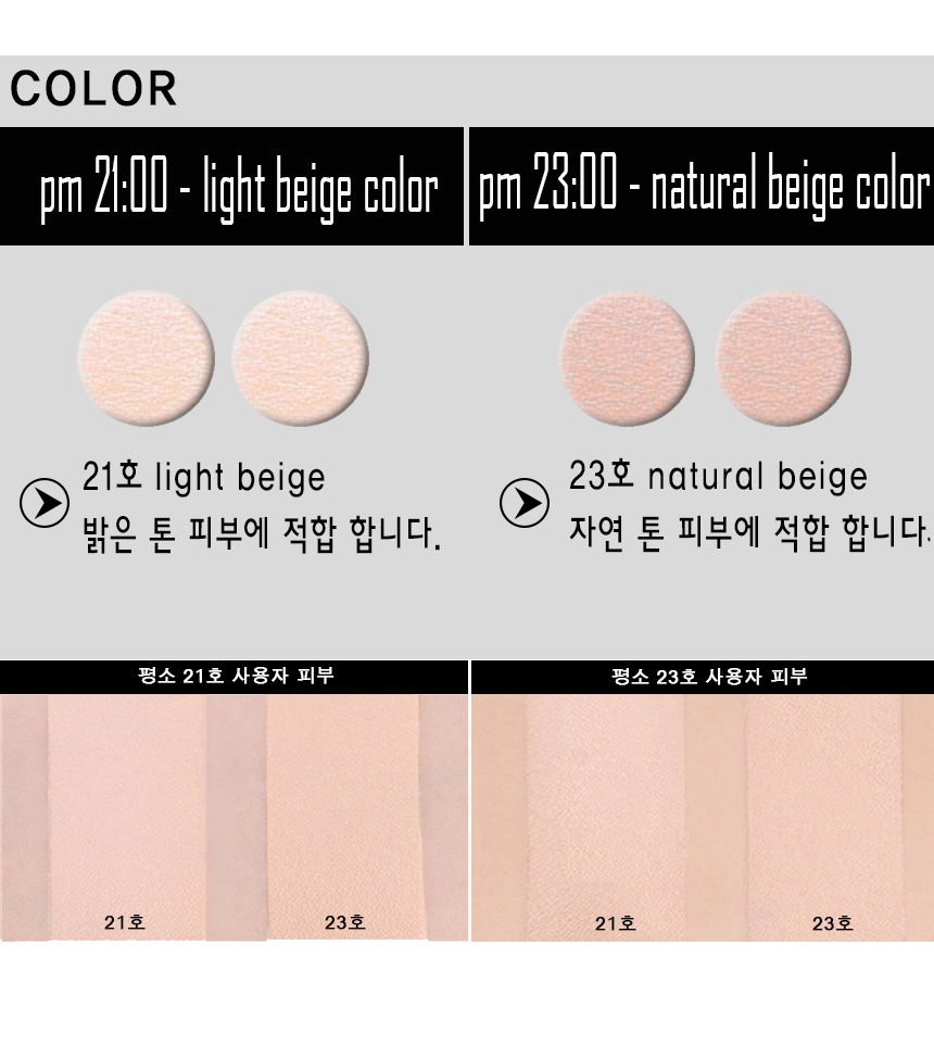 - 업그레이드 된 커버력, 지속력, 밀착력 끈적이지 않는 보송감 (얇게 발려 가볍게 느껴짐)