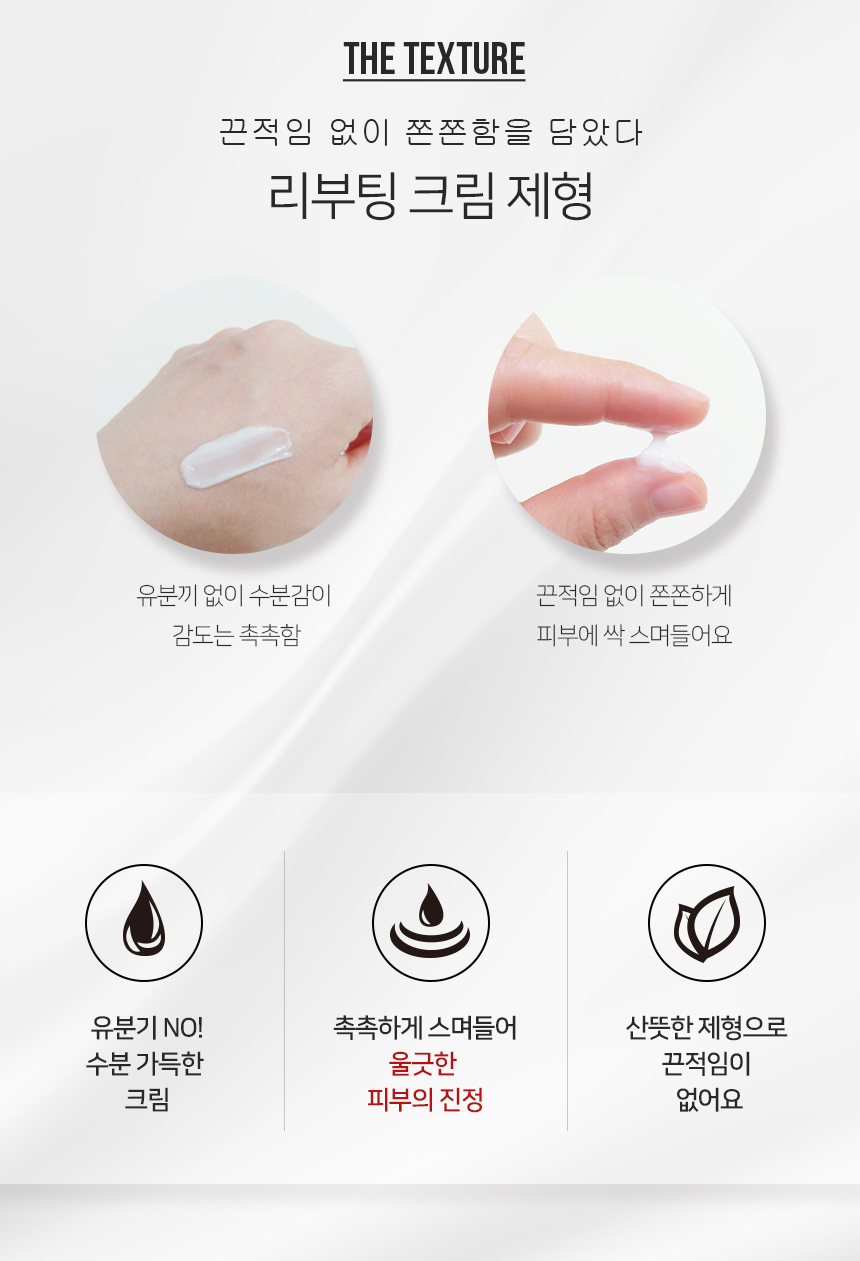 - 1년 전, 단기간에 품절되었던 크림입니다. 매니아층 고객이 많은 편이며 오래 기다려주셨던 분들이 많았습니다. 1년이라는 시간, 리뉴얼에 많은 투자가 들어간 상품이라는 부분도 어필해주세요.