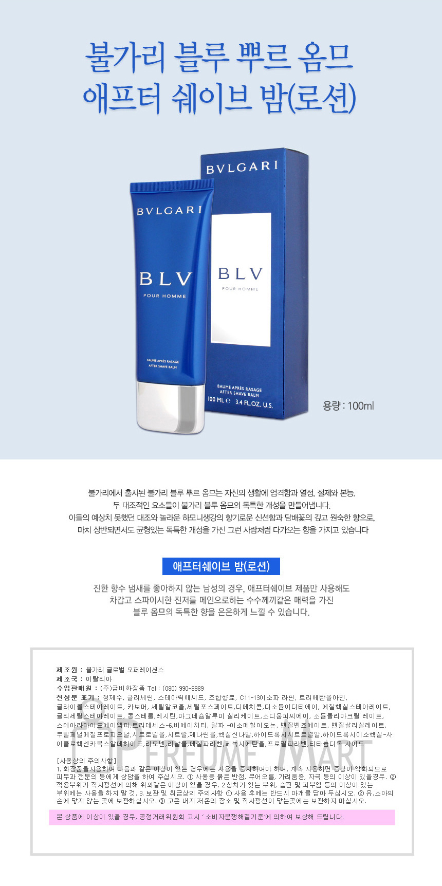 2. 불가리 블루 뿌르옴므 애프터 쉐이브 밤 로션 (남성용 로션) 100ml