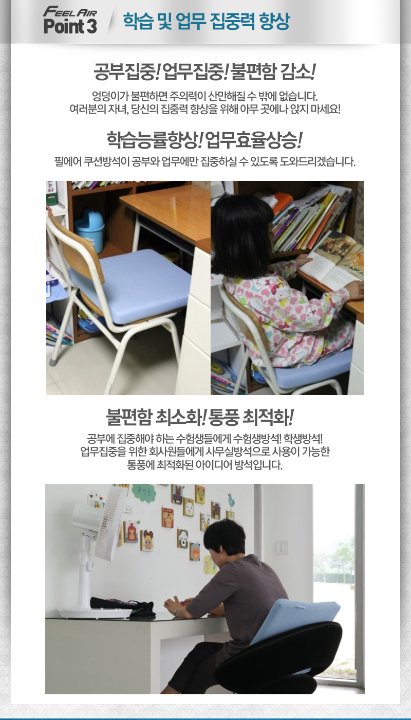 필에어방석은 앉으면 엉덩이에 땀이 안차는 기능성방석이에요.