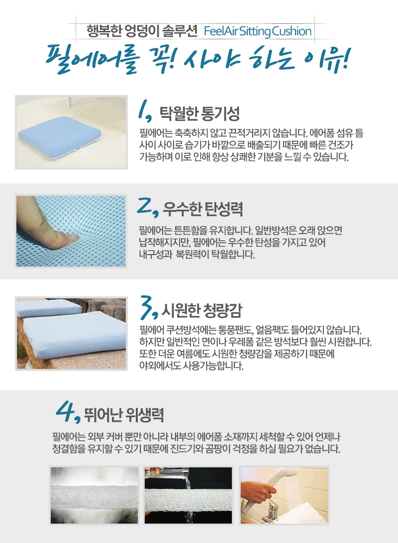 필에어방석은 외부커버뿐만 아니라 내부 에어폼도 세척이 가능해요~