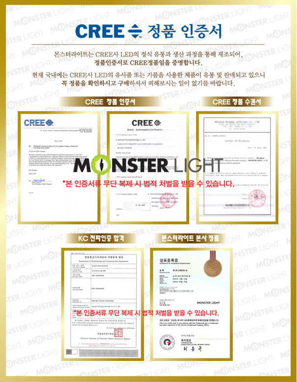 미국 CREE사 정품 인증서 및 국내 KC 안전 인증서